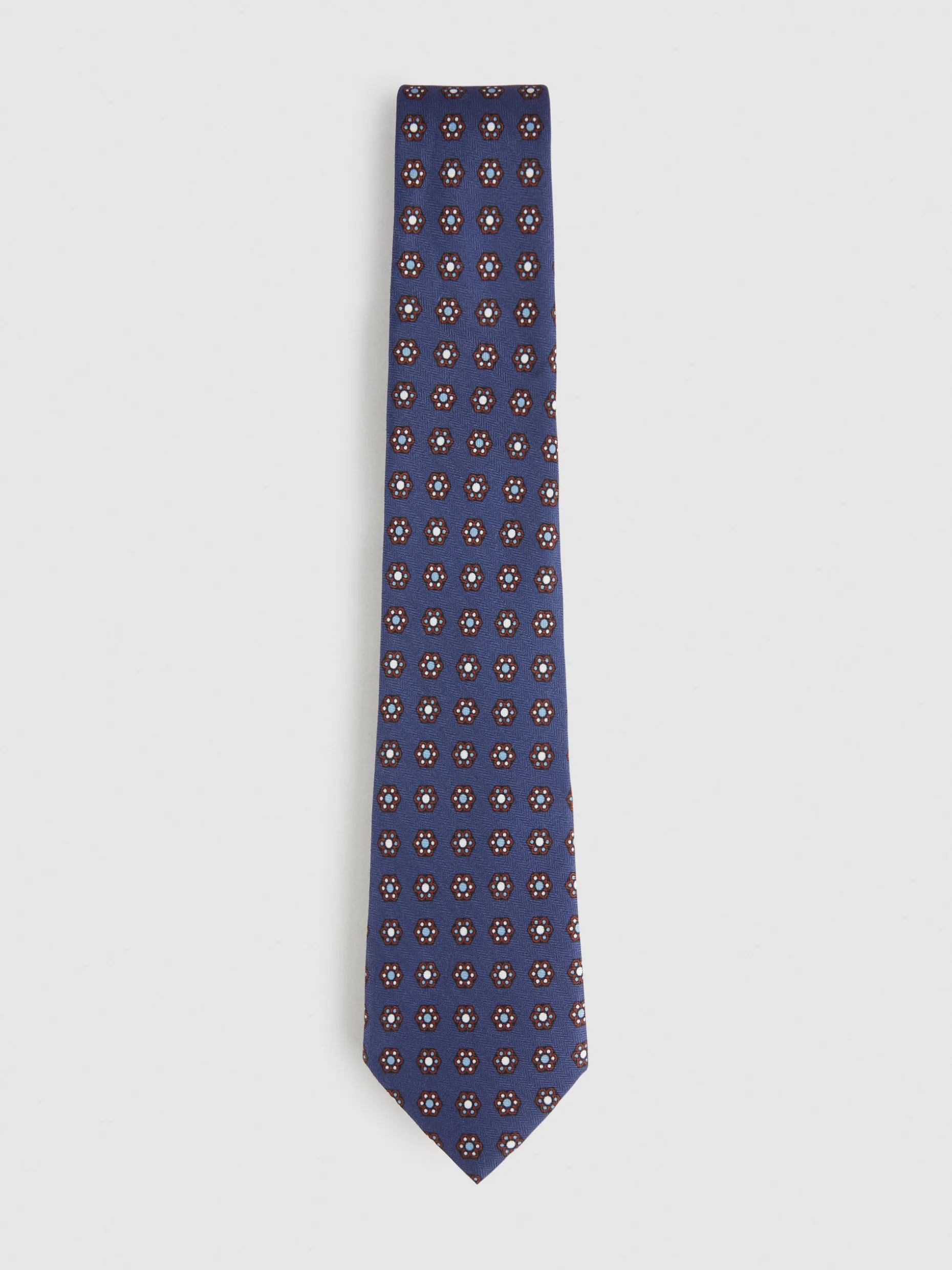 Corbata con diseño estampado personalizado confeccionada en 100% poliéster. Cuenta con el logo de la marca grabado en el interior.