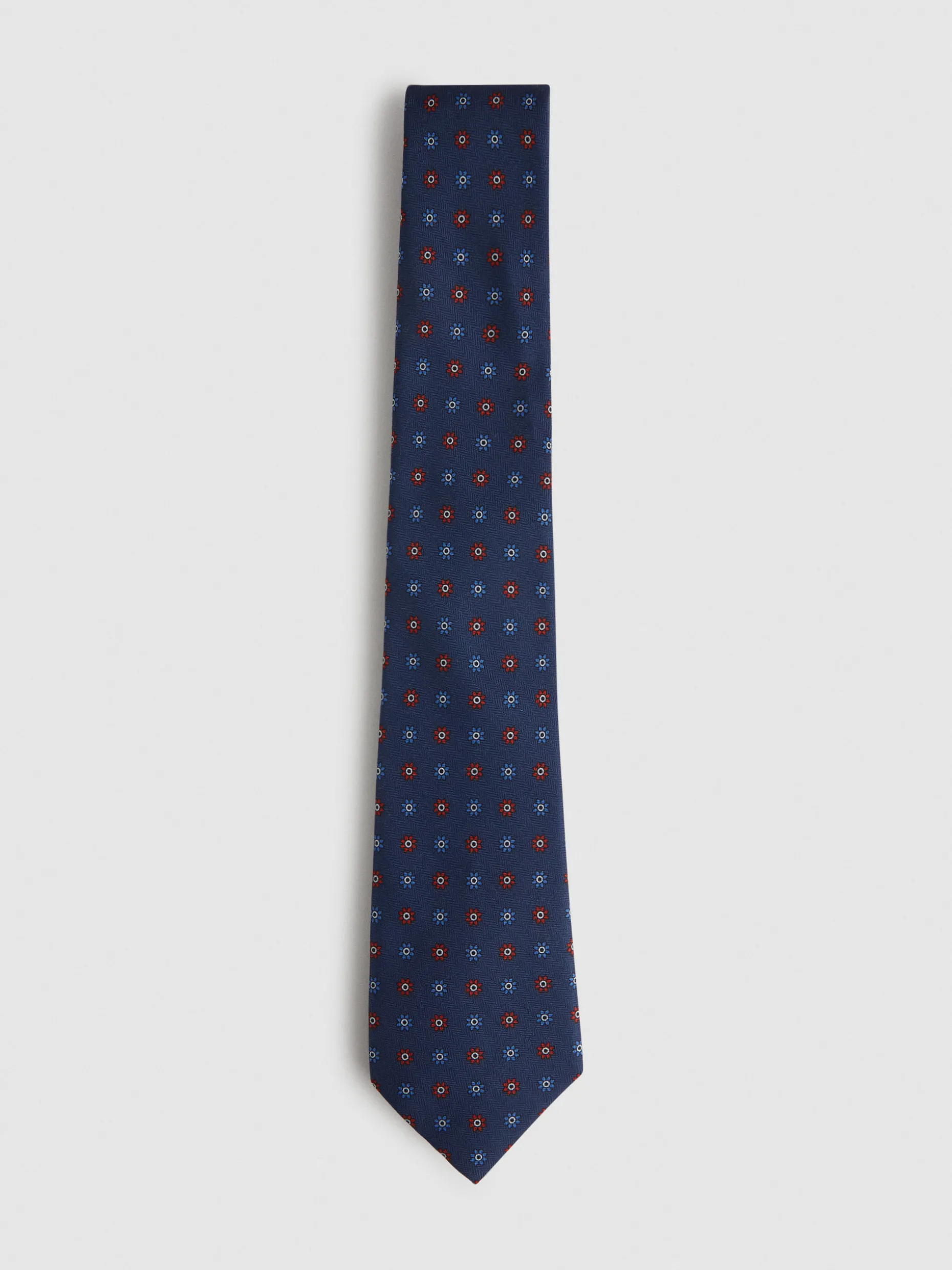 Corbata con diseño estampado personalizado confeccionada en 100% poliéster. Cuenta con el logo de la marca grabado en el interior.