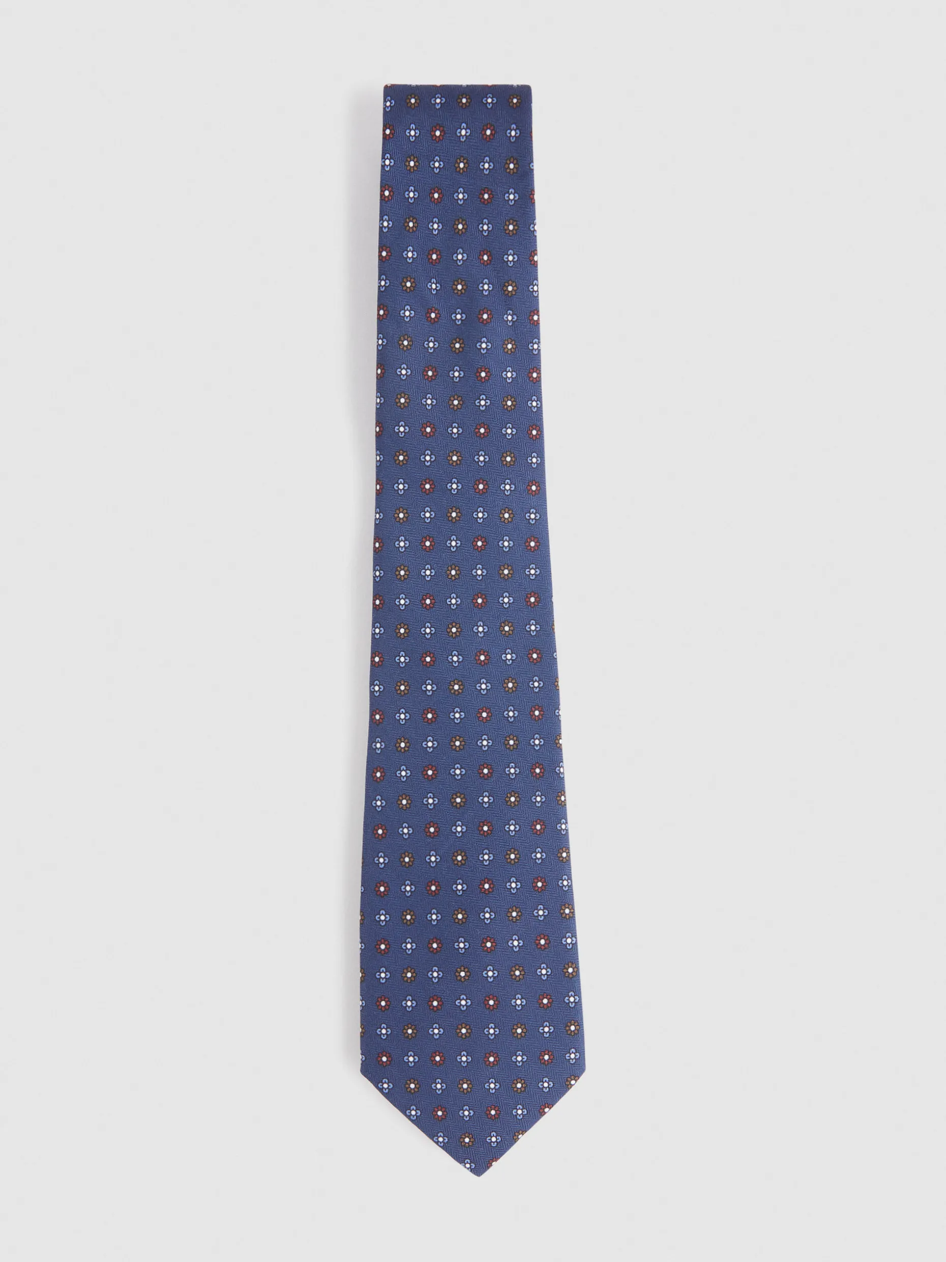 Corbata con diseño estampado personalizado confeccionada en 100% poliéster. Cuenta con el logo de la marca grabado en el interior.