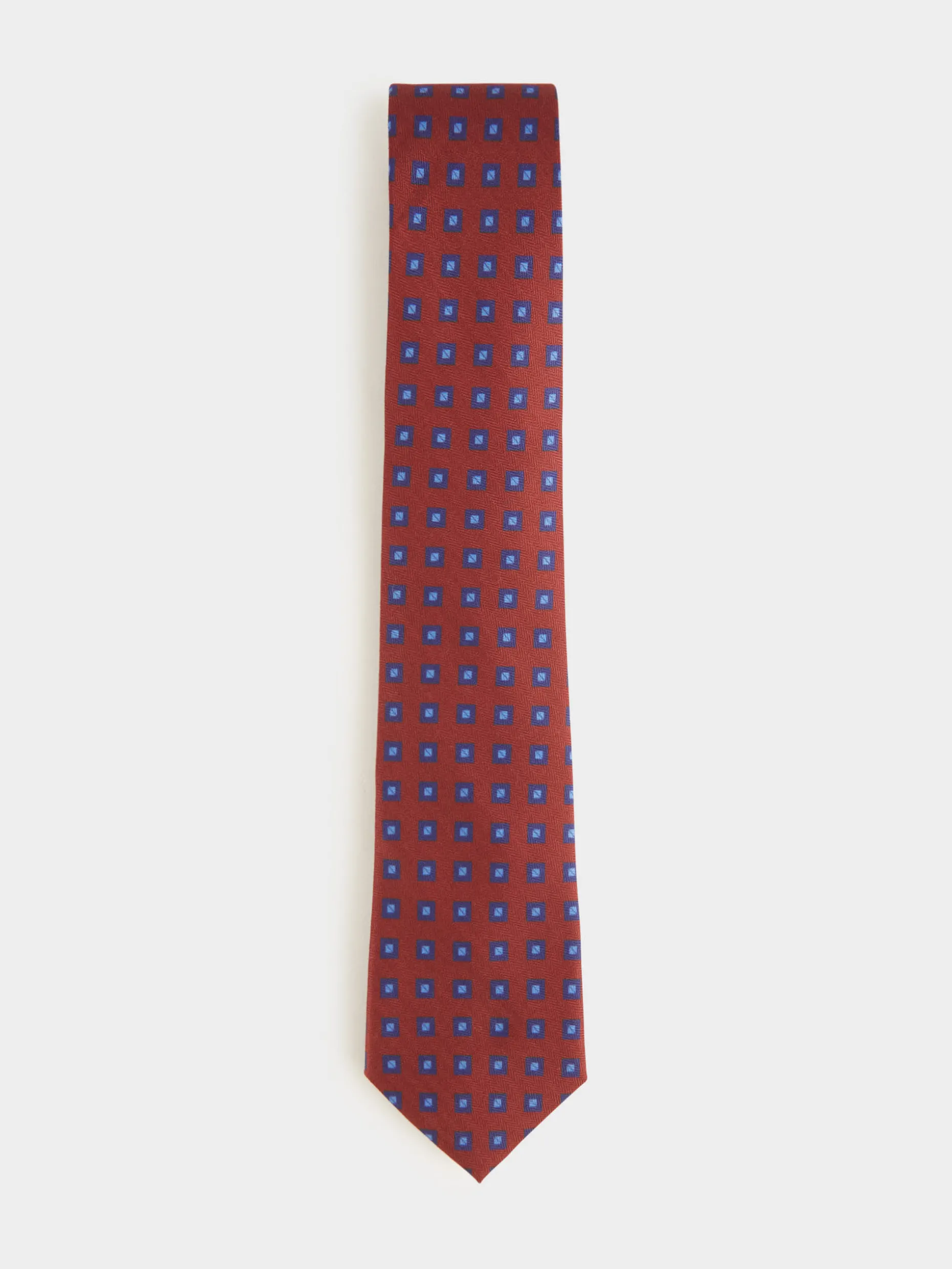 Corbata con diseño estampado personalizado confeccionada en 100% poliéster. Cuenta con el logo de la marca grabado en el interior.