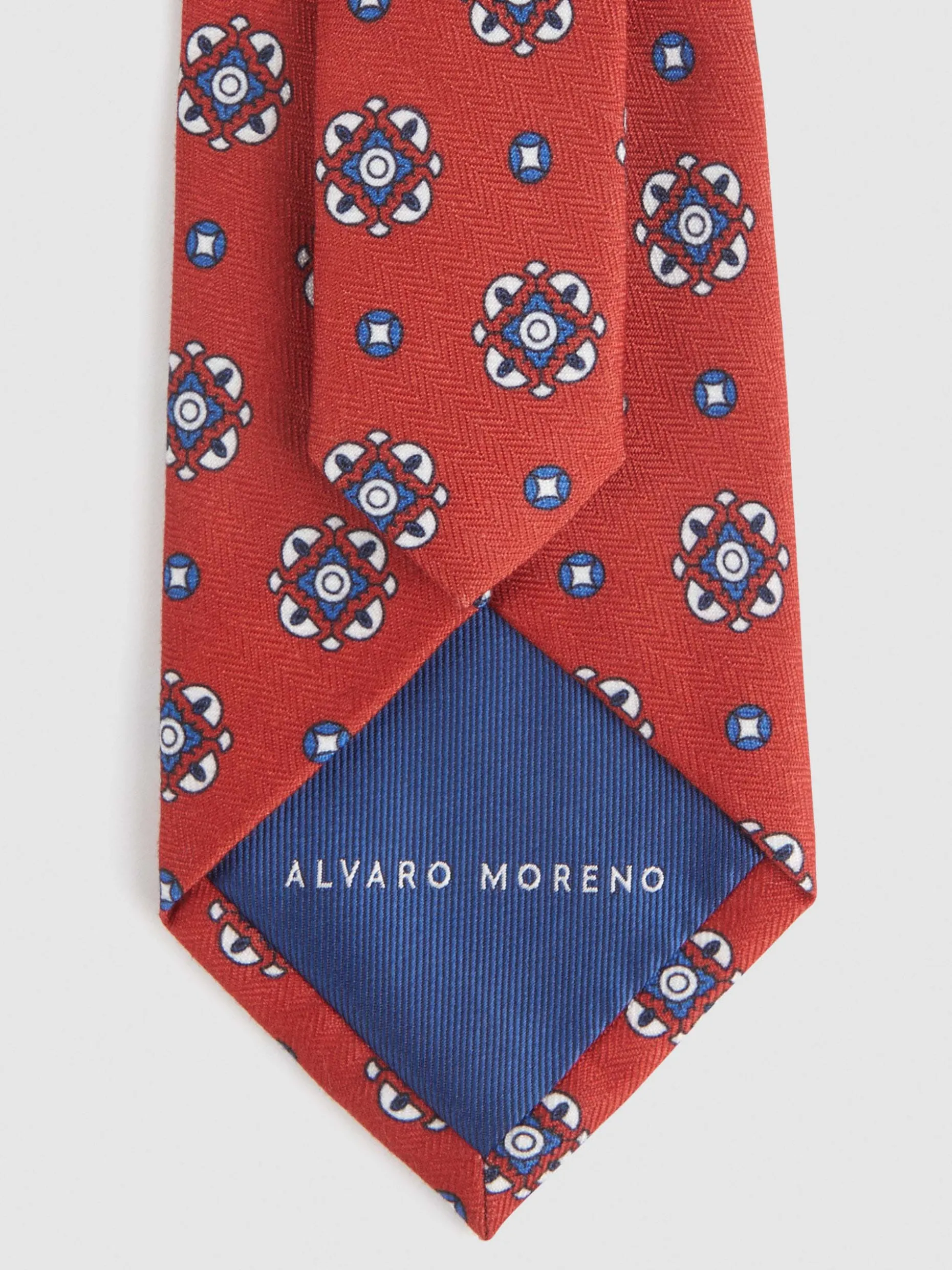 Corbata con diseño estampado personalizado confeccionada en 100% poliéster. Cuenta con el logo de la marca grabado en el interior.