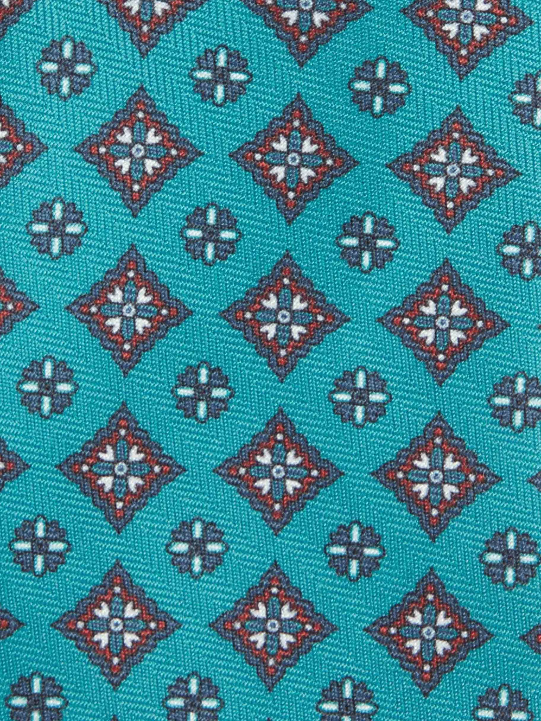 Corbata con diseño estampado personalizado confeccionada en 100% poliéster. Cuenta con el logo de la marca grabado en el interior.
