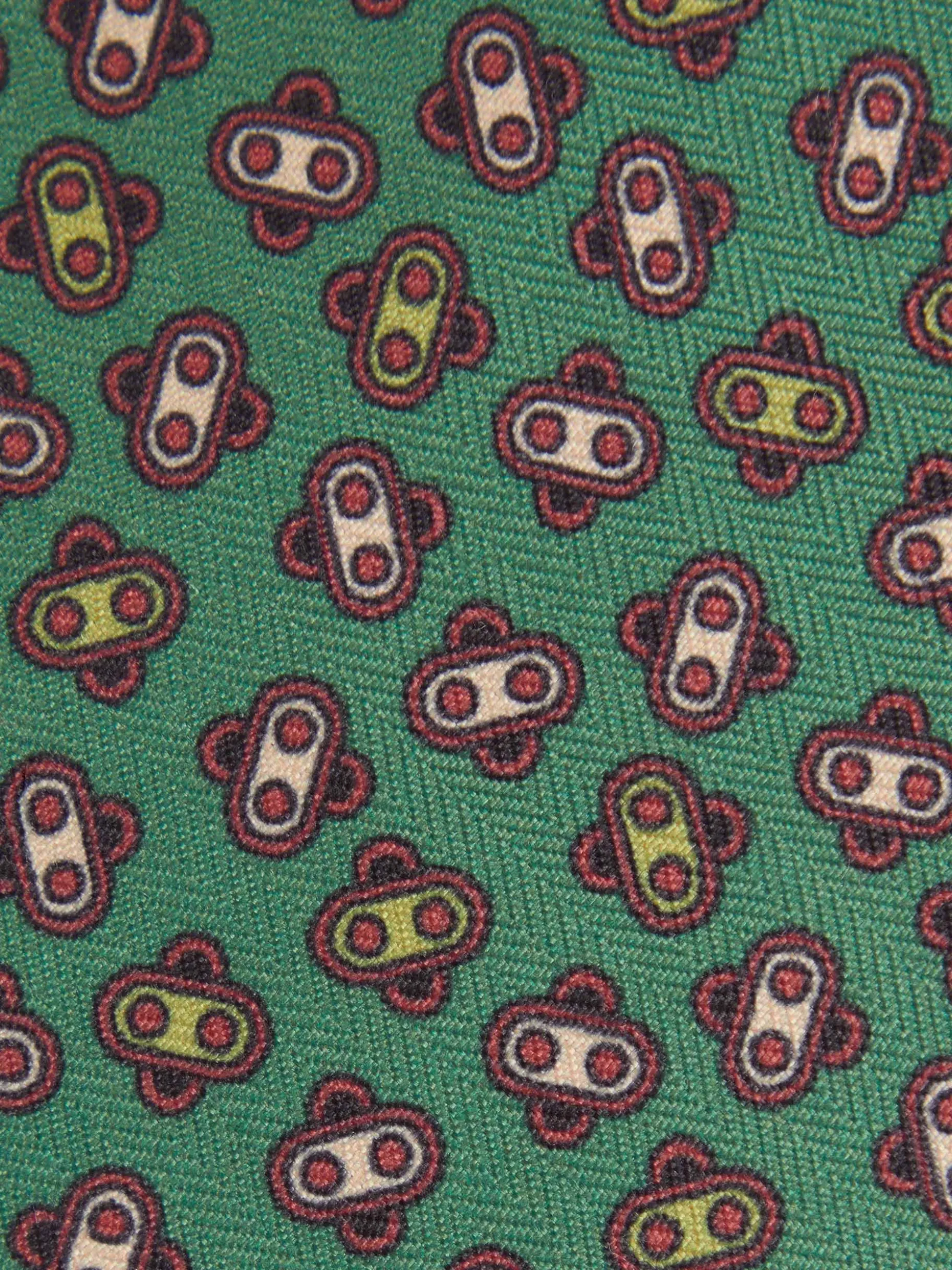 Corbata con diseño estampado personalizado confeccionada en 100% poliéster. Cuenta con el logo de la marca grabado en el interior.