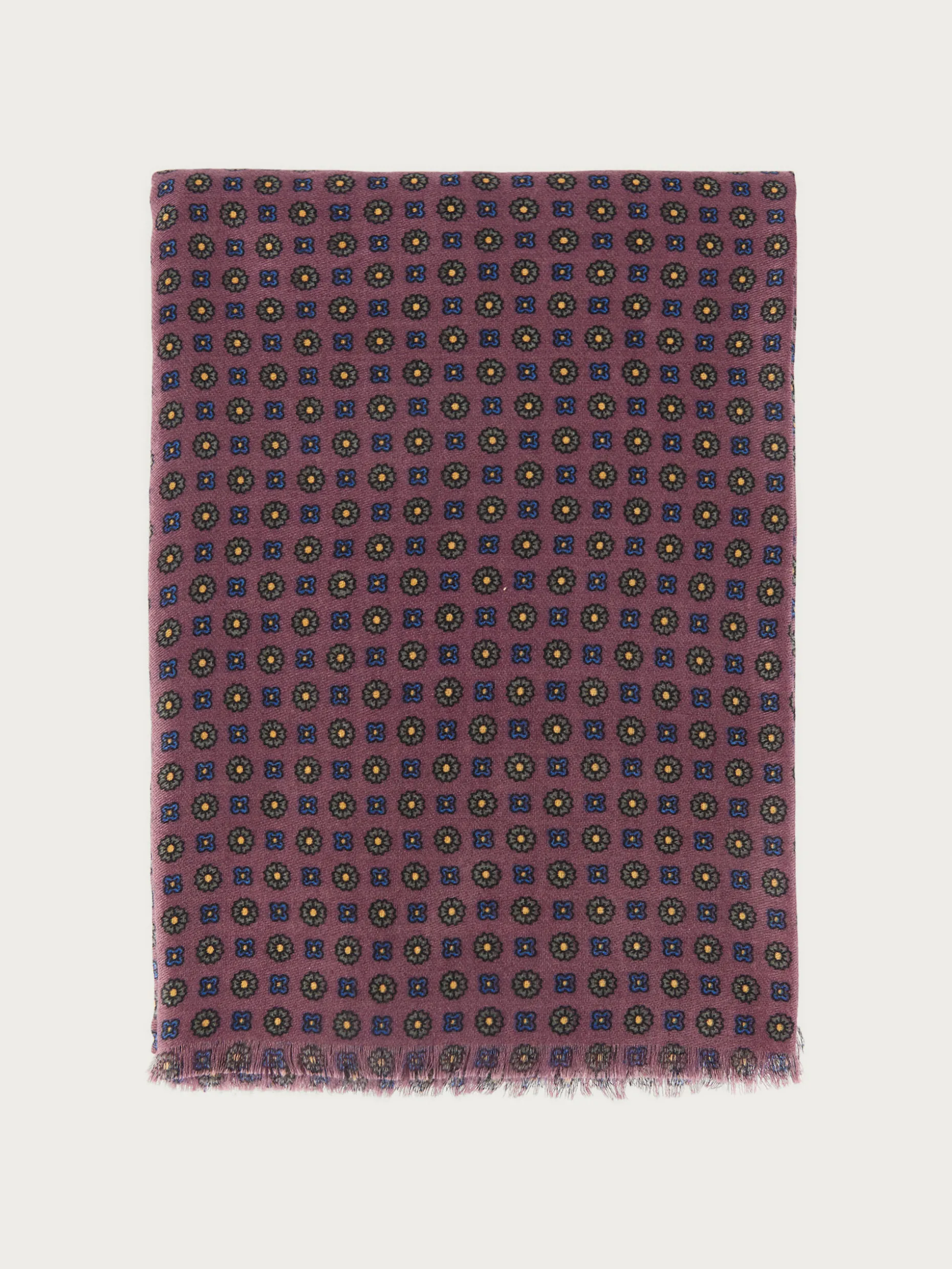 Foulard de diseño personalizado estampado confeccionado en tejido suave y cálido. Terminación con flecos.