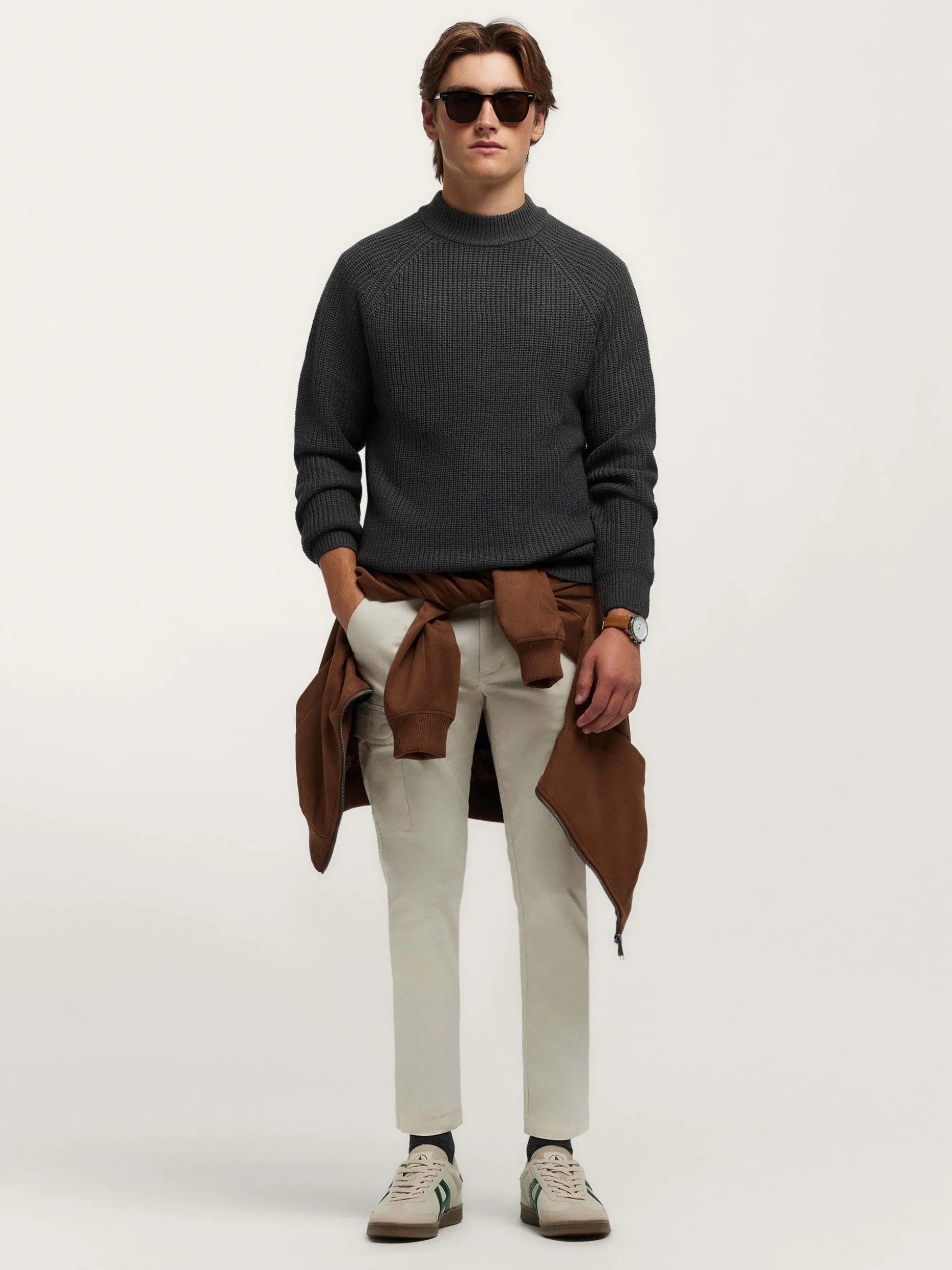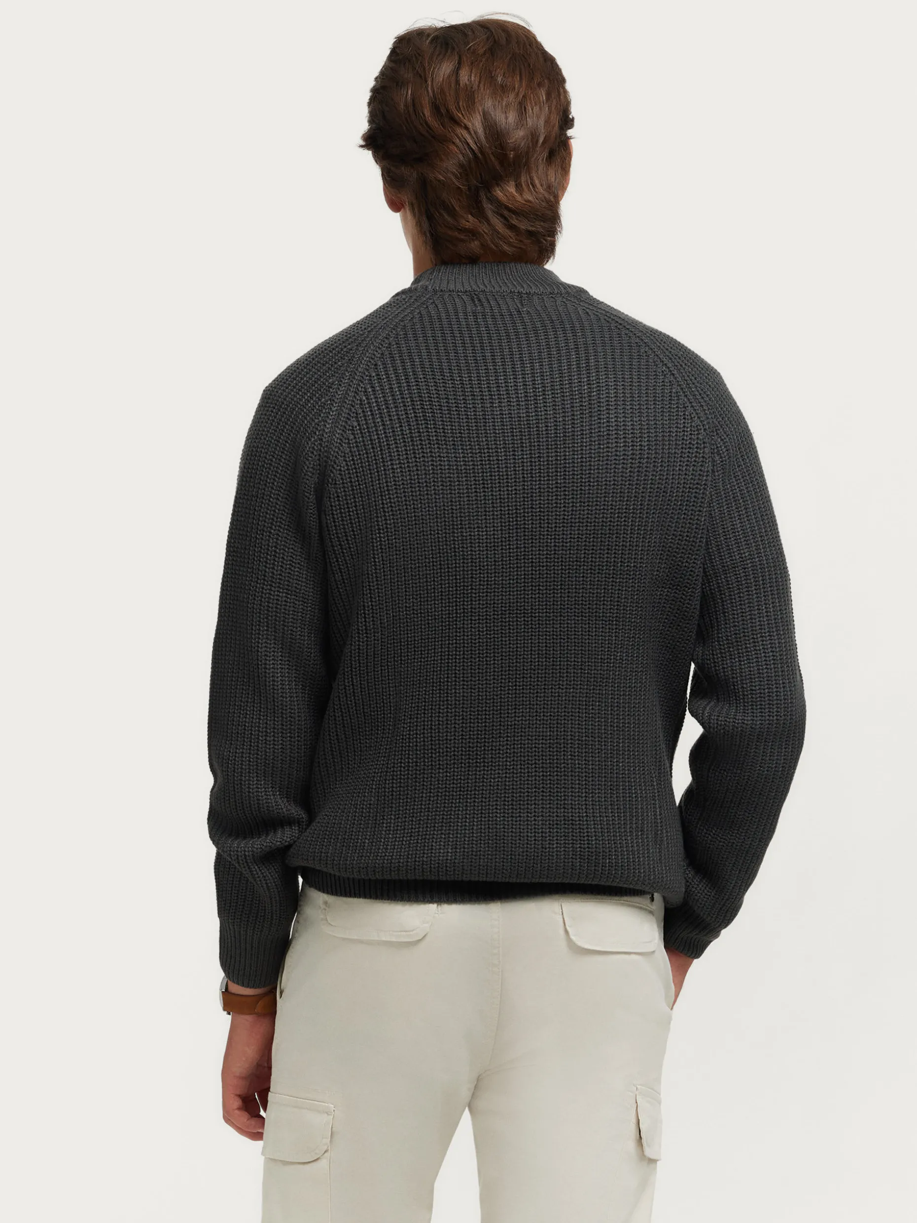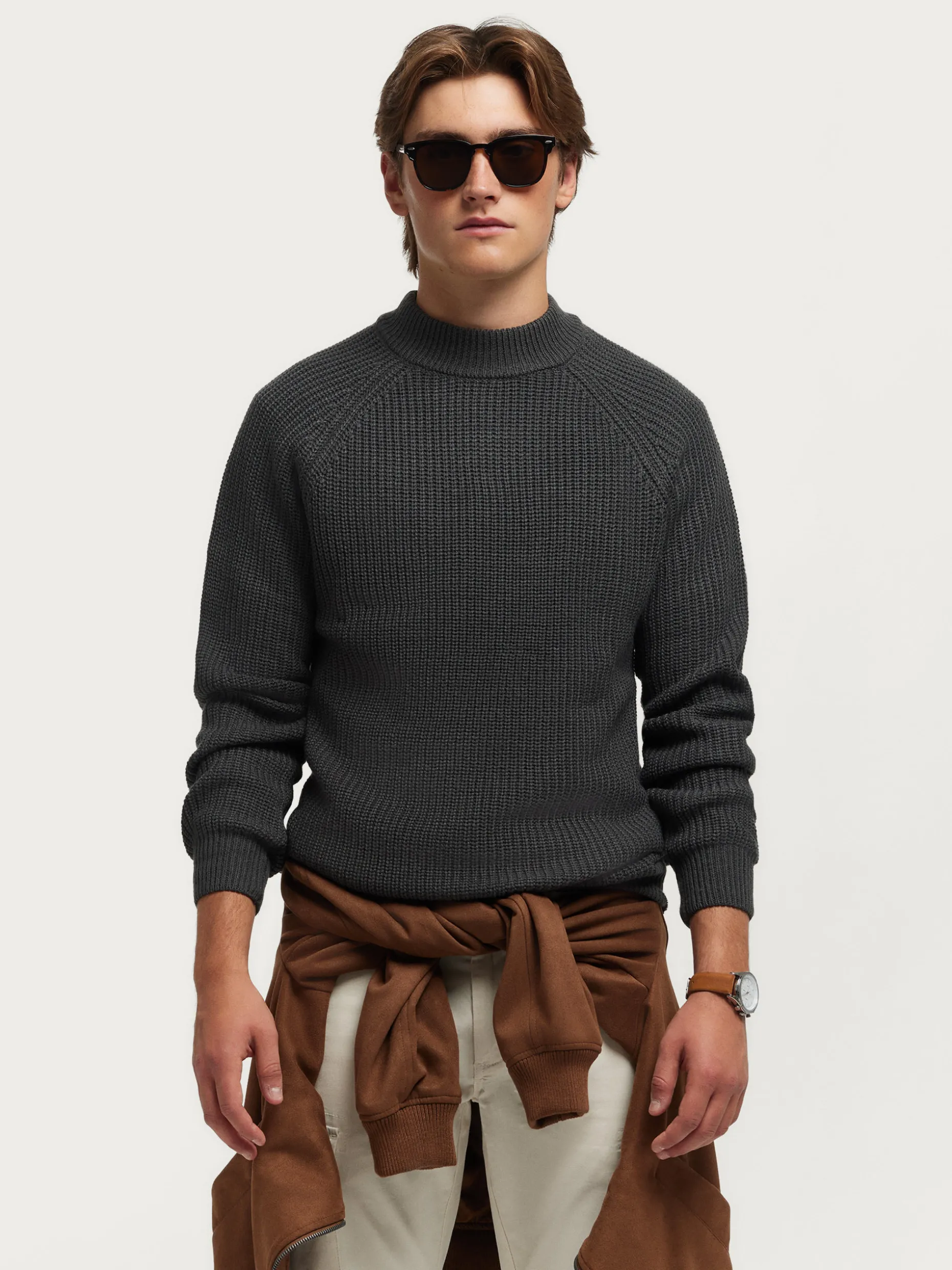 Jersey con cuello perkins confeccionado en tejido de rejillas. Cuenta con manga estilo ranglan, detalle metálico personalizado en el frontal y acabado ribeteado en el cuello, puños y cintura. Corte regular fit.