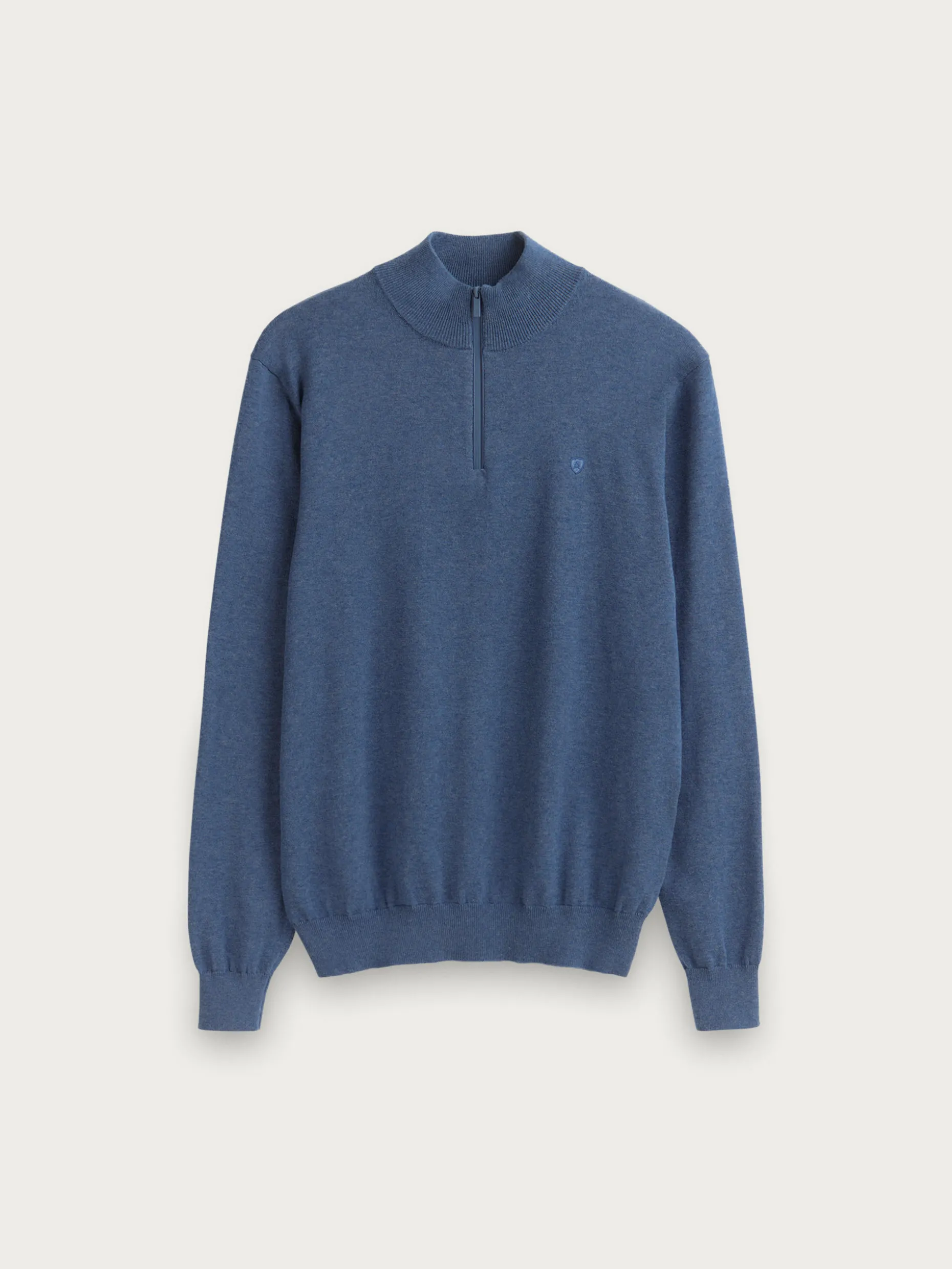 Jersey de corte regular confeccionado en algodón. Cuello alto con medio cierre de cremallera. Logo bordado en el frontal al tono. Cuello, puños y bajo en acabado elástico.