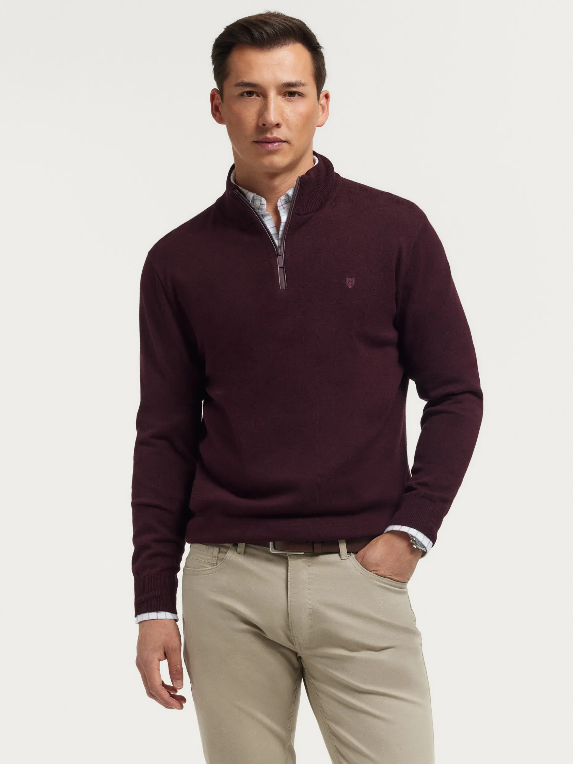 Jersey de corte regular confeccionado en algodón. Cuello alto con medio cierre de cremallera. Logo bordado en el frontal al tono. Cuello, puños y bajo en acabado elástico.
