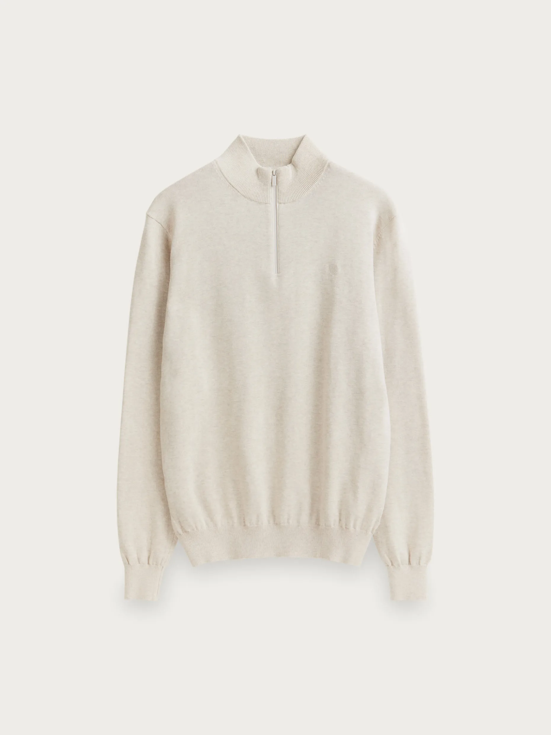 Jersey de corte regular confeccionado en algodón. Cuello alto con medio cierre de cremallera. Logo bordado en el frontal al tono. Cuello, puños y bajo en acabado elástico.