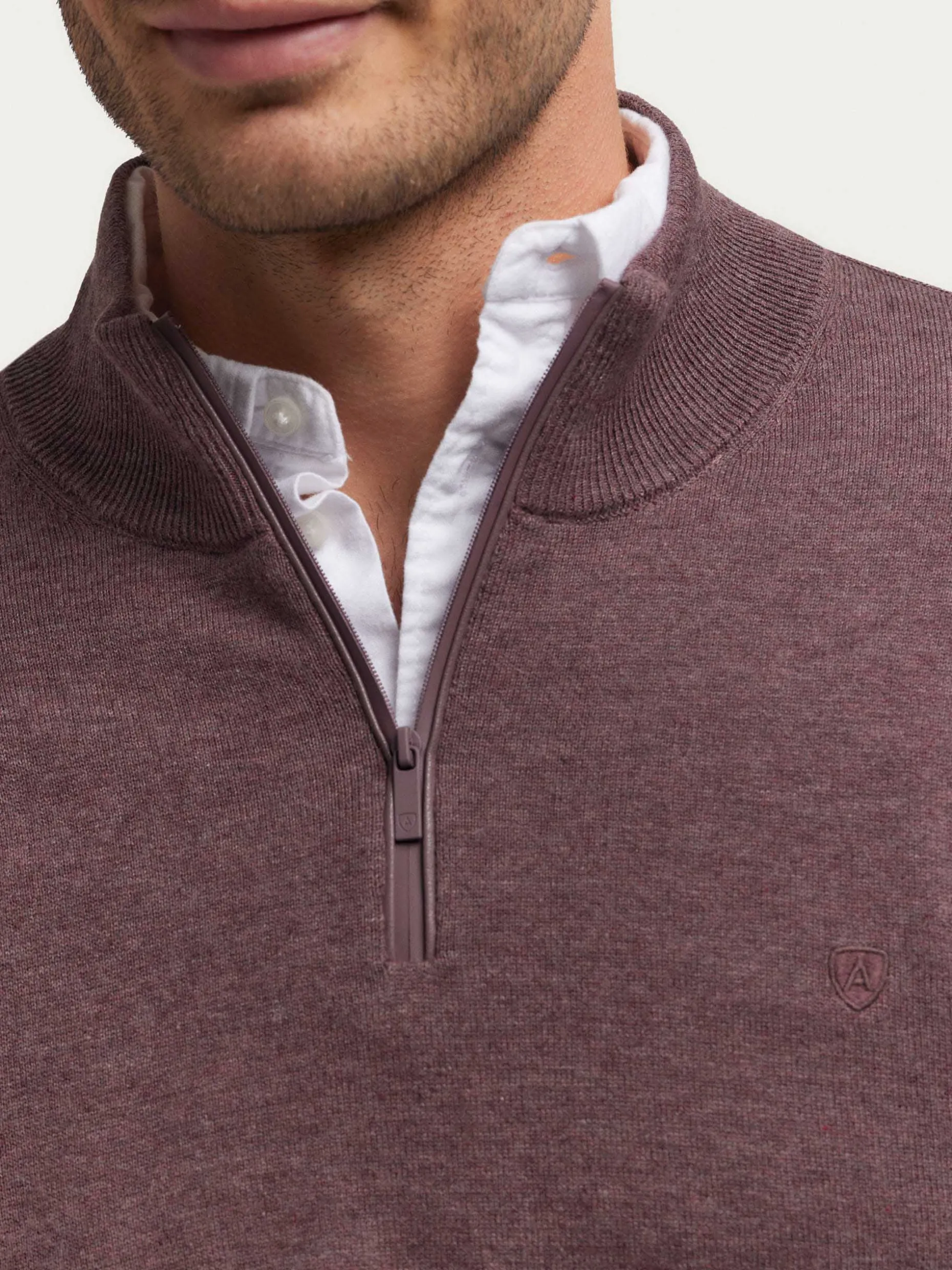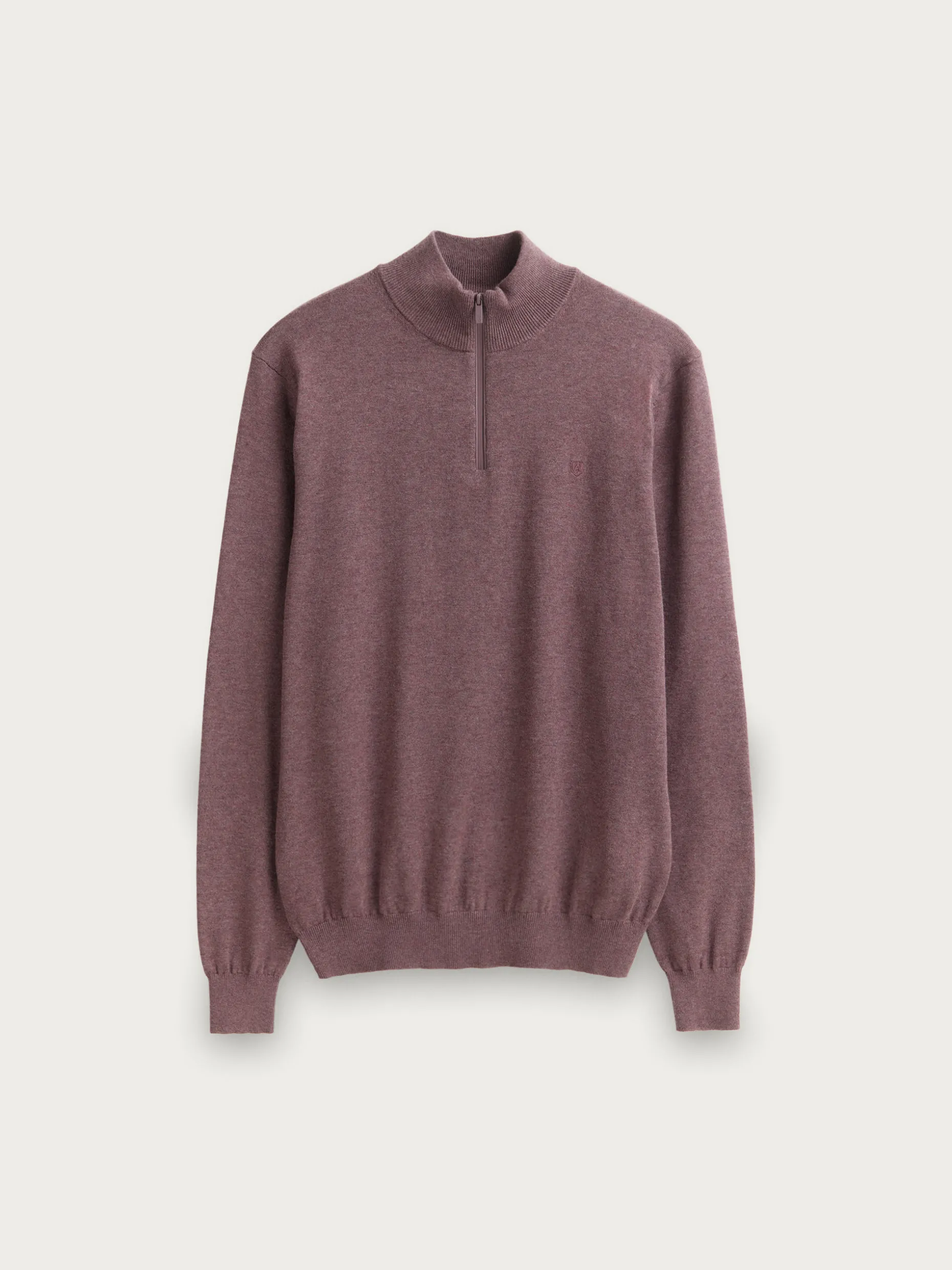 Jersey de corte regular confeccionado en algodón. Cuello alto con medio cierre de cremallera. Logo bordado en el frontal al tono. Cuello, puños y bajo en acabado elástico.