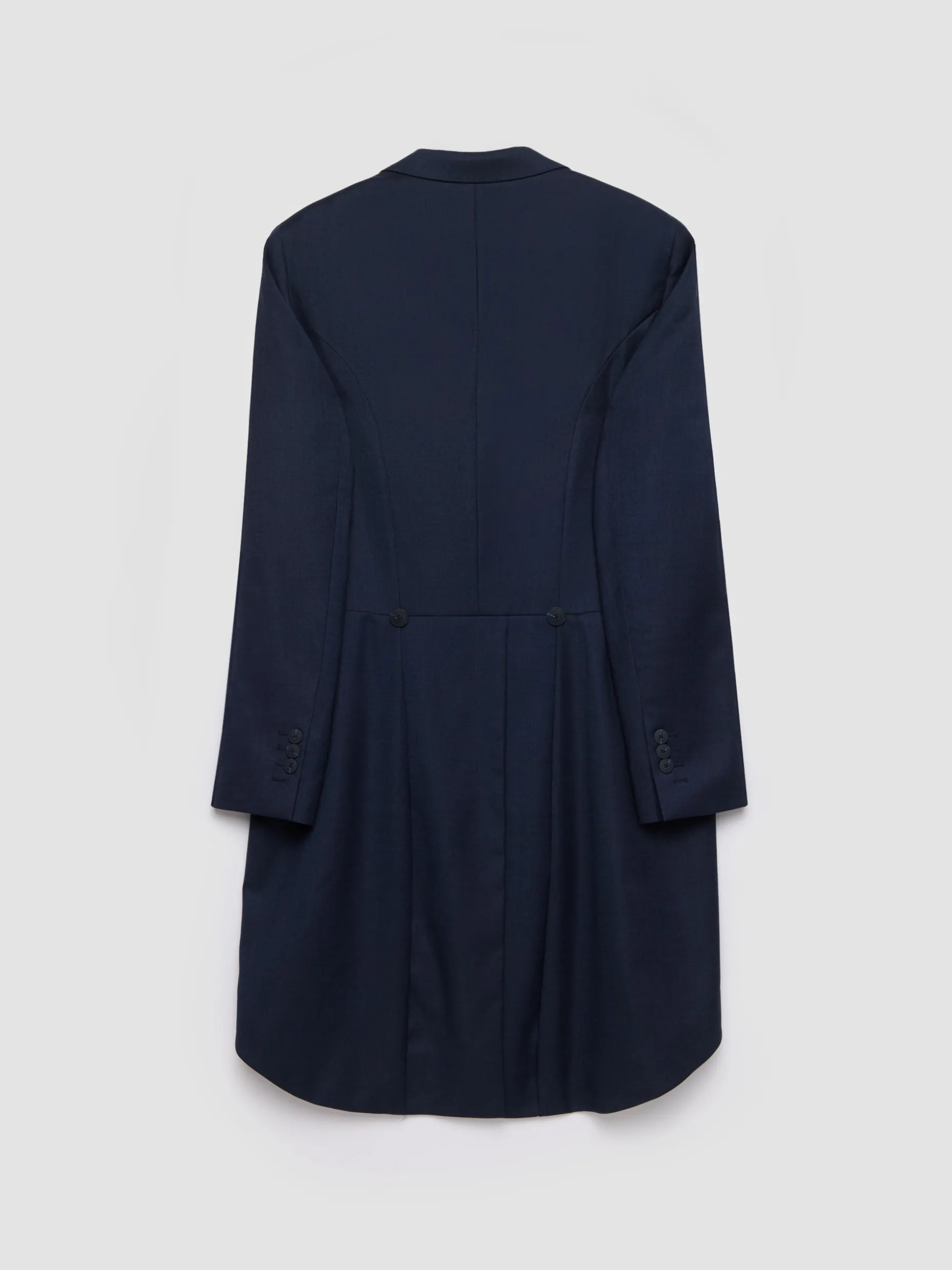 Levita clásico de un conjunto de dos piezas. Cuenta con cuello y solapa, cierre central mediante botonadura, bolsillo de ojal en el pecho, manga larga con botones en los puños, abertura en la espalda y forrada en su interior con bolsillos.