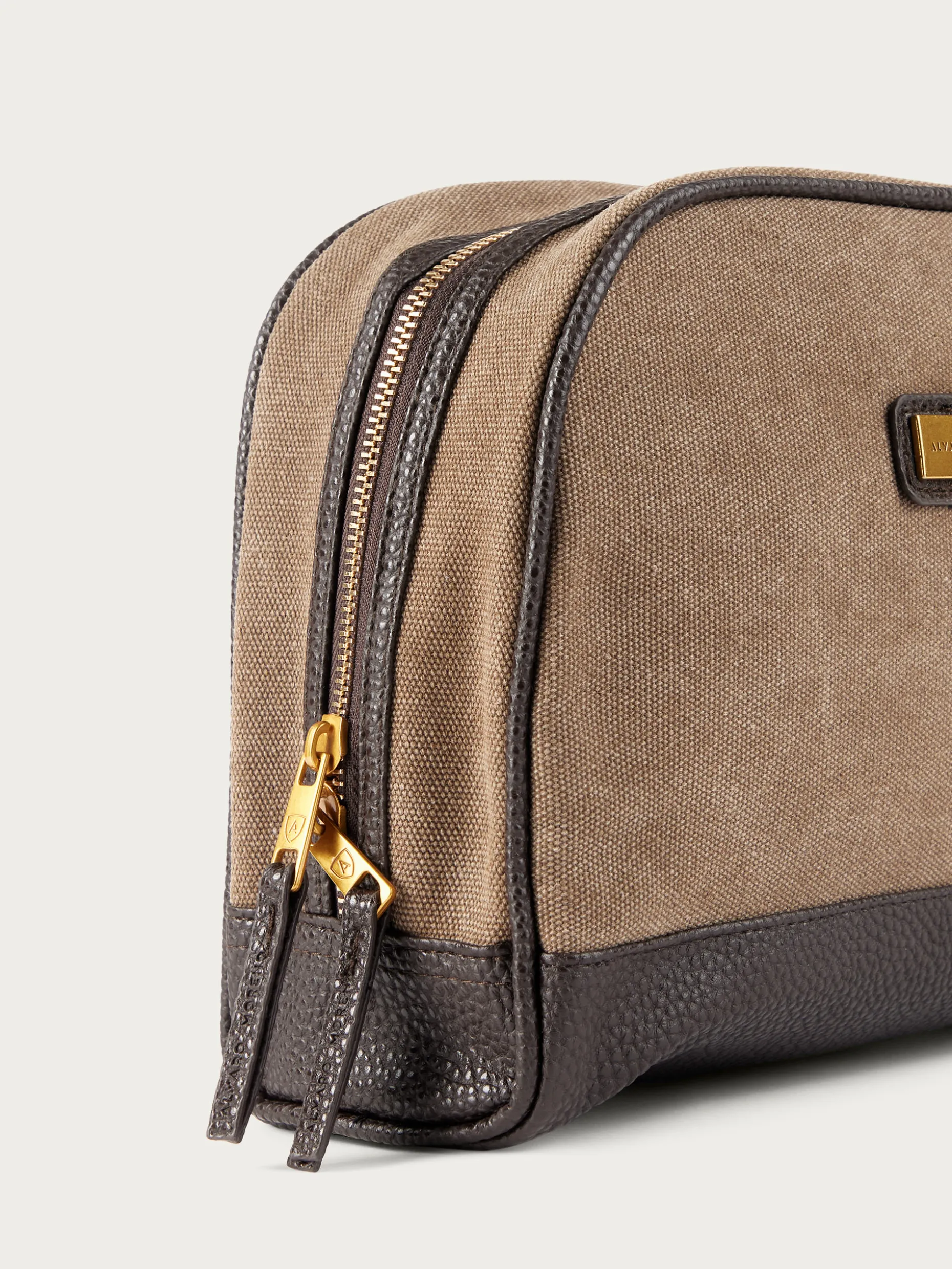 Neceser con asa de transporte lateral y detalle personalizado grabado en el frontal. Doble cierre central mediante cremallera. Compartimento interior forrado y con bolsillo. Detalles en aspecto piel.
