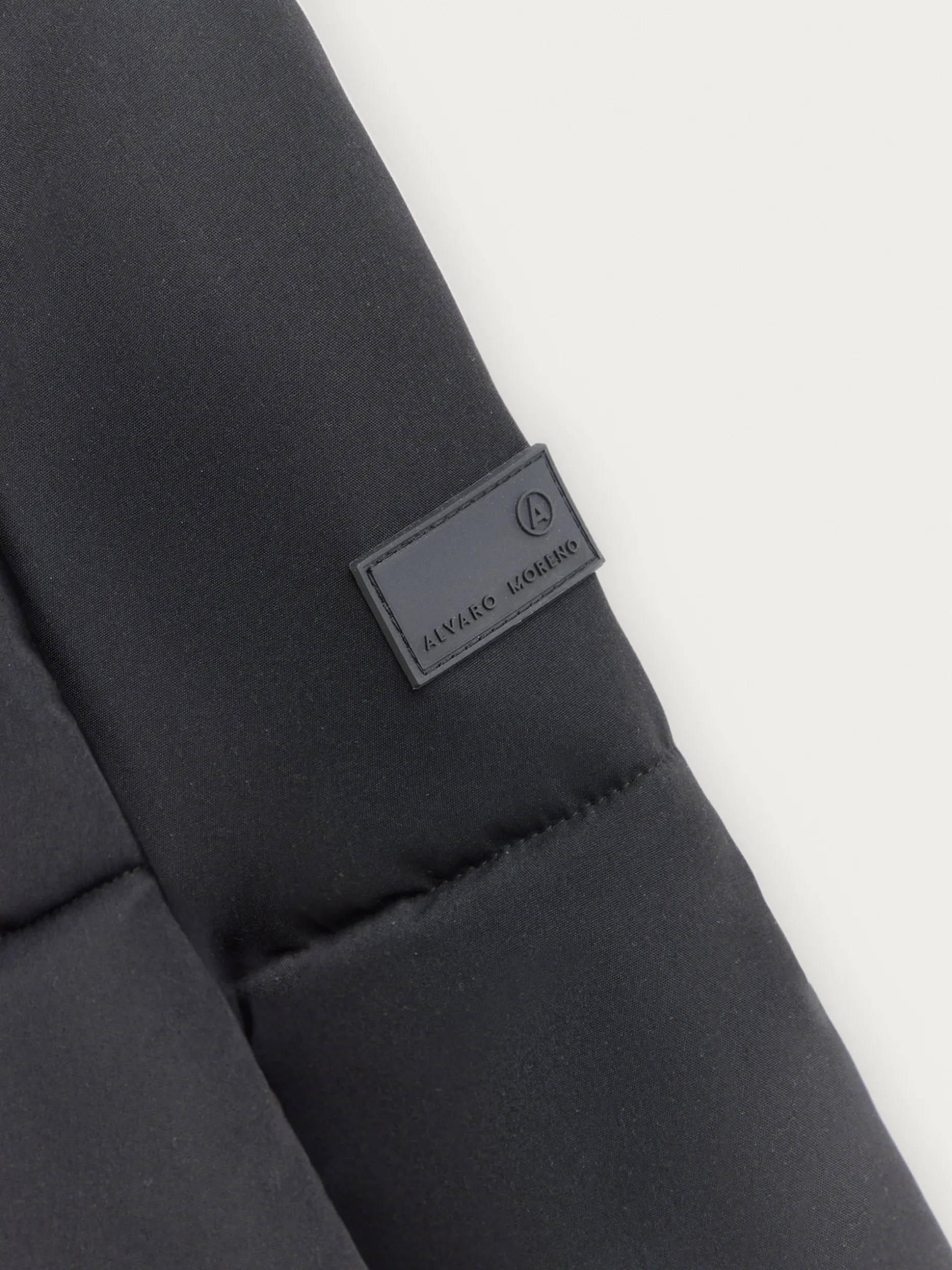 Parka acolchada de cuello alto con gorro y corte regular fit. Cuenta con cierre central mediante cremallera oculta por tapeta de velcro, dos bolsillos en la cintura con doble compartimento y puños ajustables. Detalle personalizado engomado en una de sus mangas. Forrada y con bolsillos en su interior.