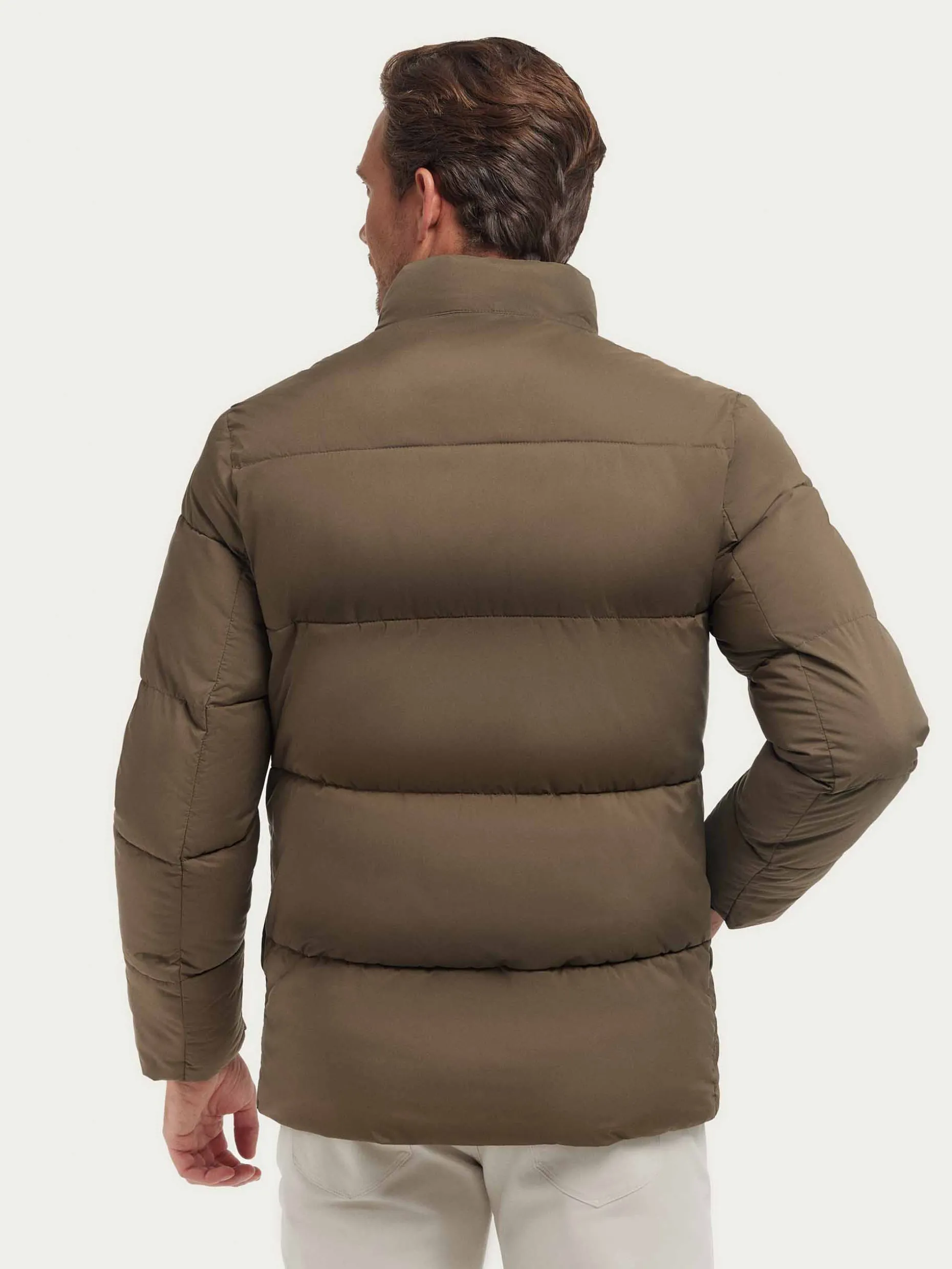 Parka acolchada con cuello de corte regular fit. Cuenta con cierre central mediante doble cremallera, dos bolsillos en la cintura y detalle personalizado en una de sus mangas. Bolsillo interior.