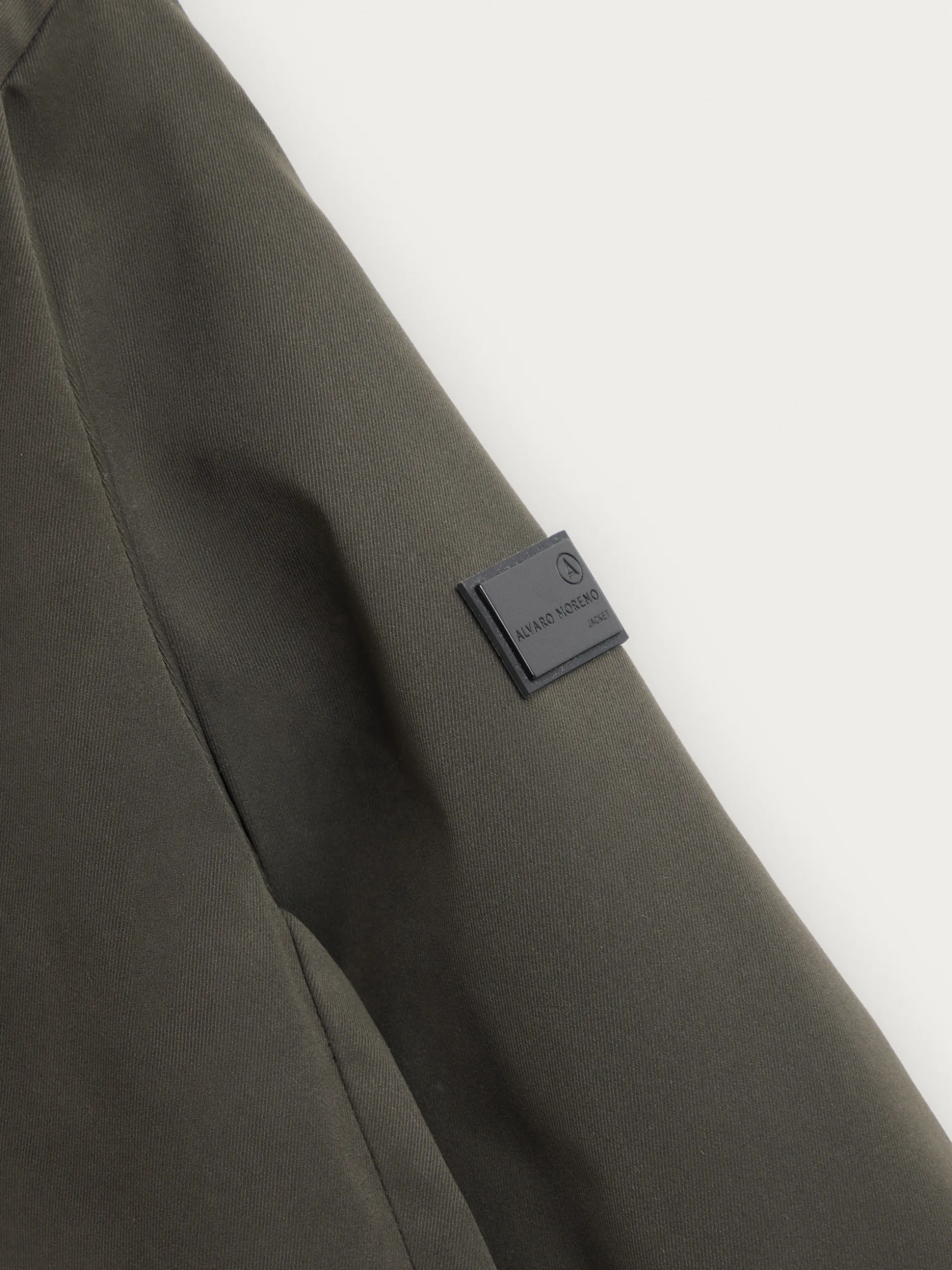 Parka larga acolchada con cuello subido y gorro desmontable. Cierre central mediante cremallera oculta por tapeta de botones a presión, dos bolsillos en la cintura y detalle personalizado en una de las mangas. Forrada y con bolsillos en el interior.