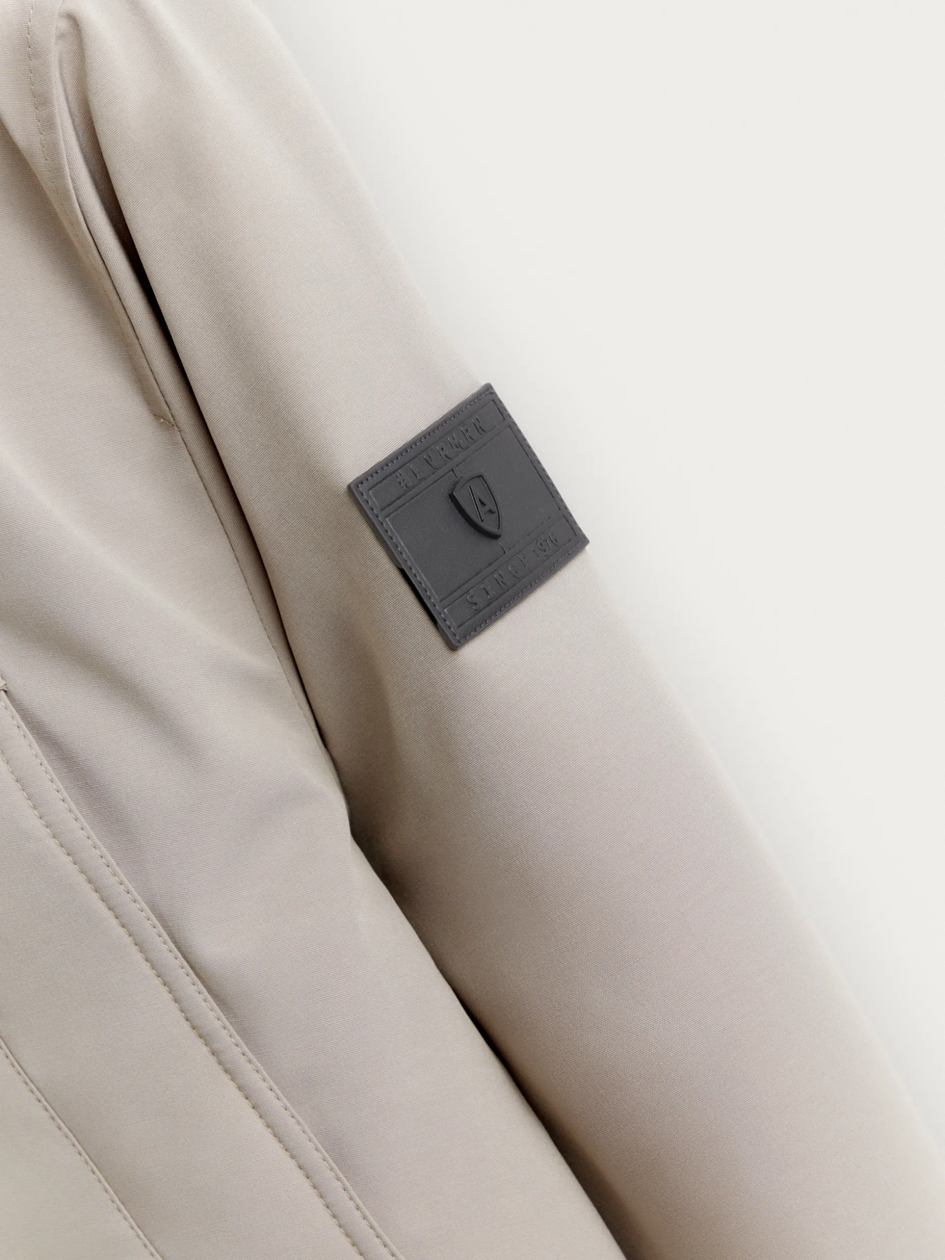Parka acolchada con cuello subido y gorro. Cuenta con cierre central mediante doble cremallera oculta por tapeta de botones a presión, dos bolsillos a la altura del pecho, dos bolsillos en la cintura y parche personalizado en una de sus mangas.