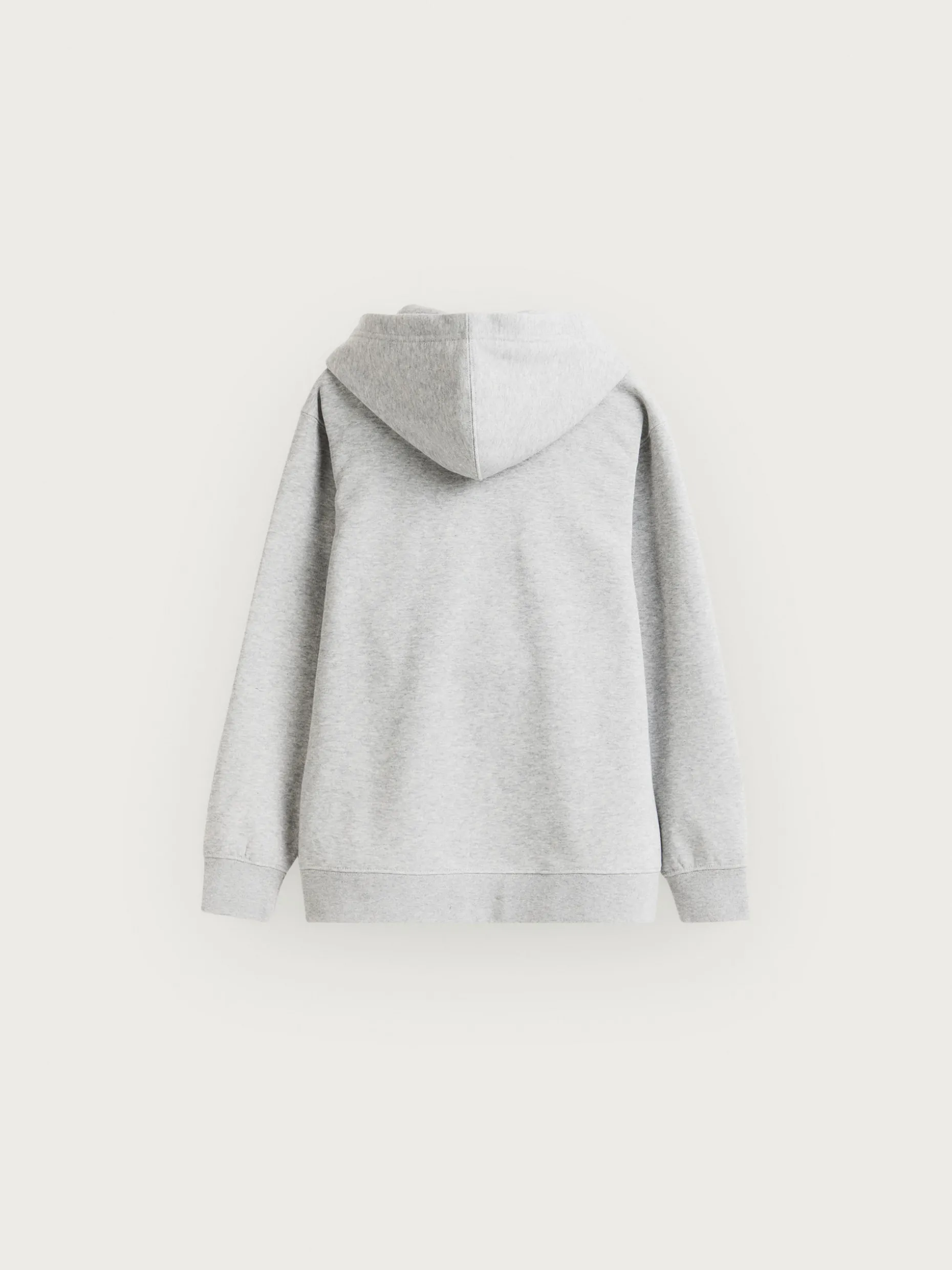 Sudadera con gorro ajustable mediante cordón al tono, estampado personalizado en el frontal y bolsillo estilo canguro en la cintura. Etiqueta canvas en el lateral. Puños y bajos en acabado elástico. Corte regular fit.