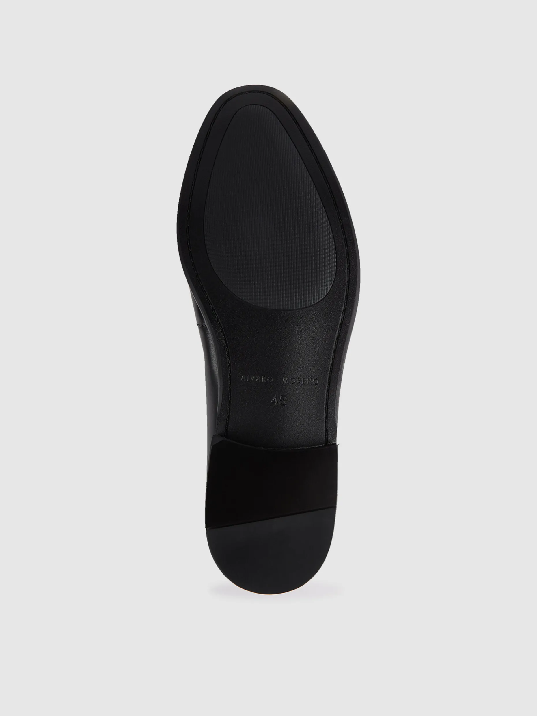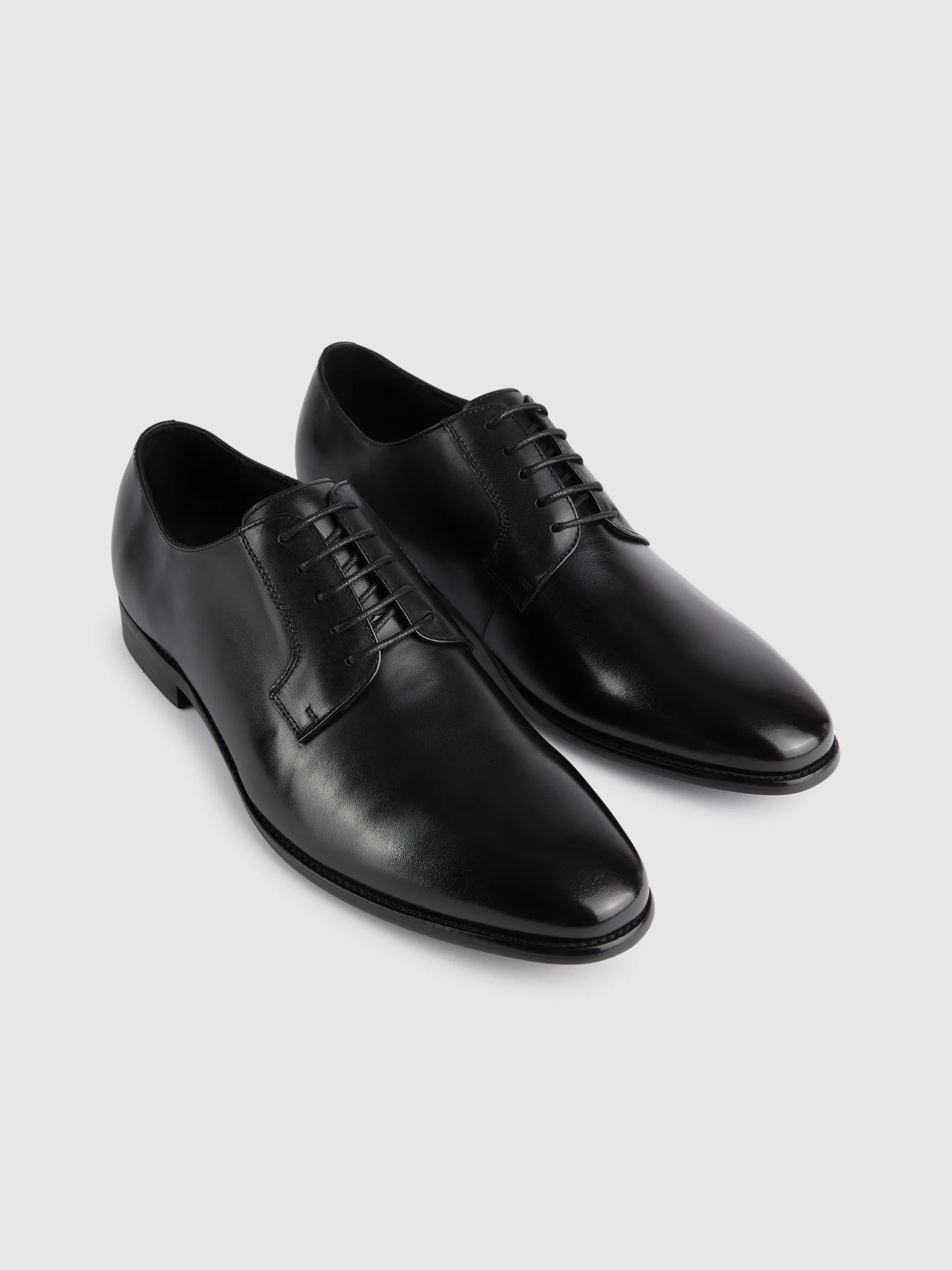 Zapato de vestir estilo clásico confeccionado en cuero. Puntera redonda y suela con dos partes laminadas en goma antideslizante. Cordones al tono de hasta cinco pasados y forrado en su interior.