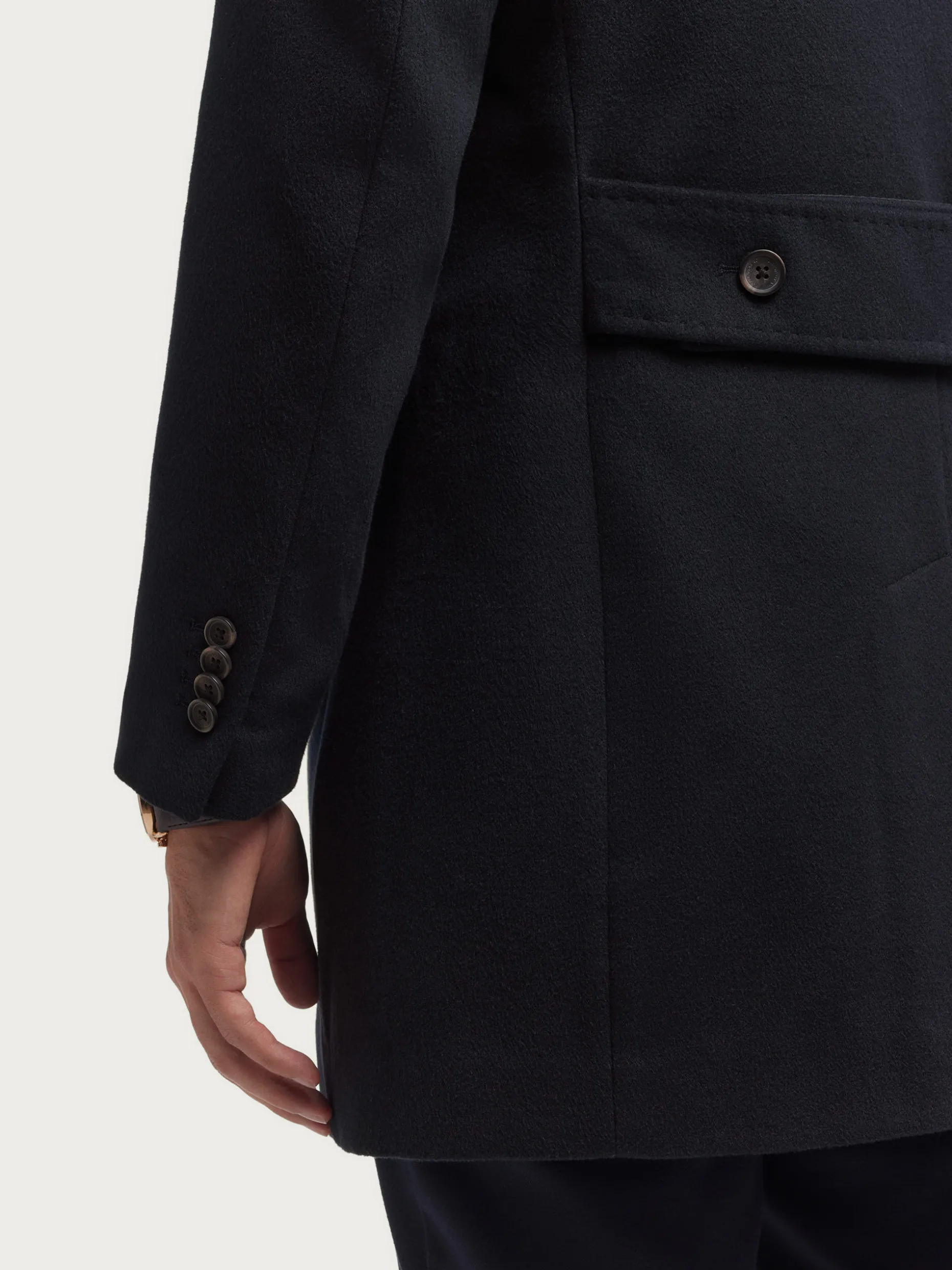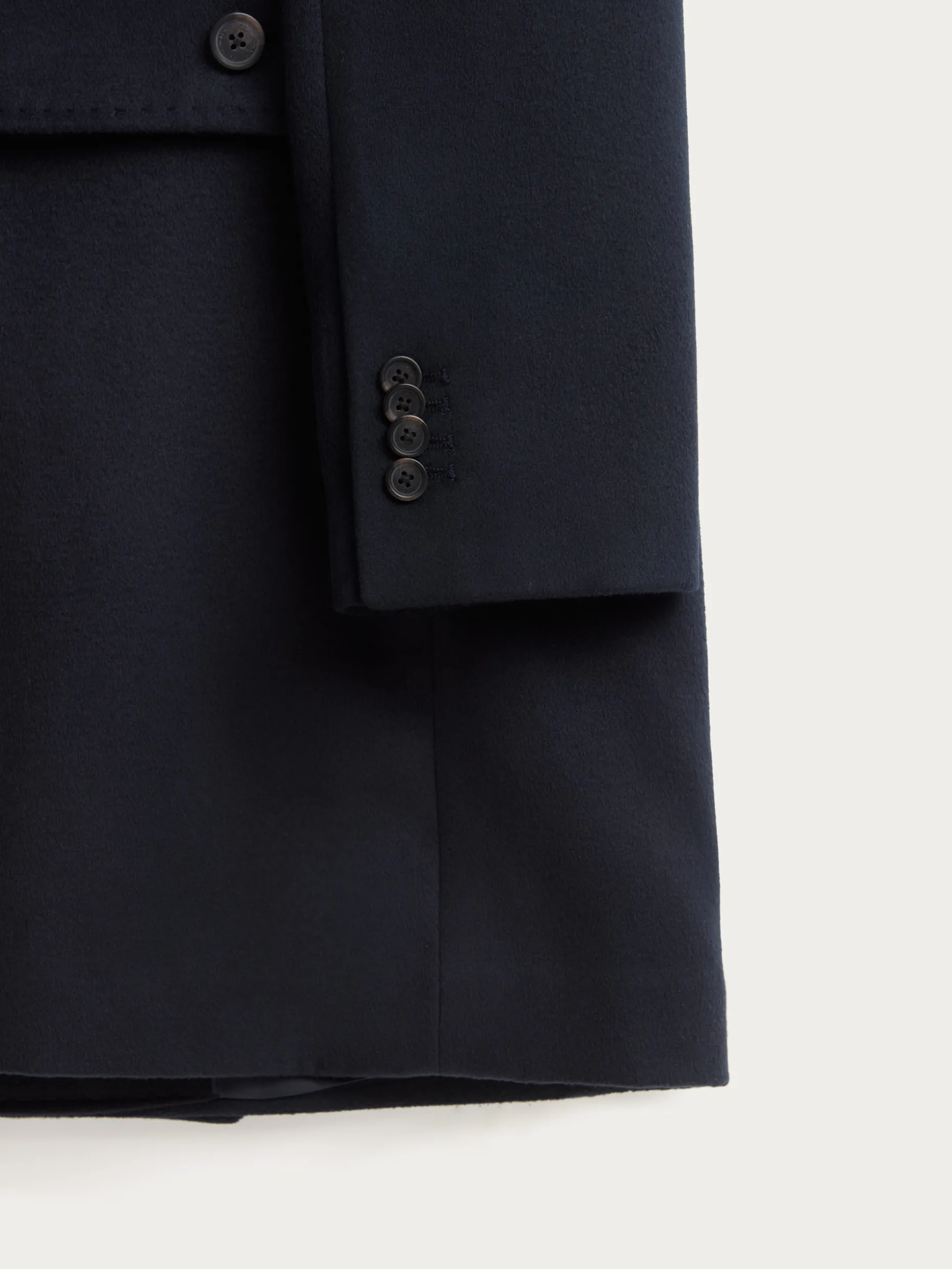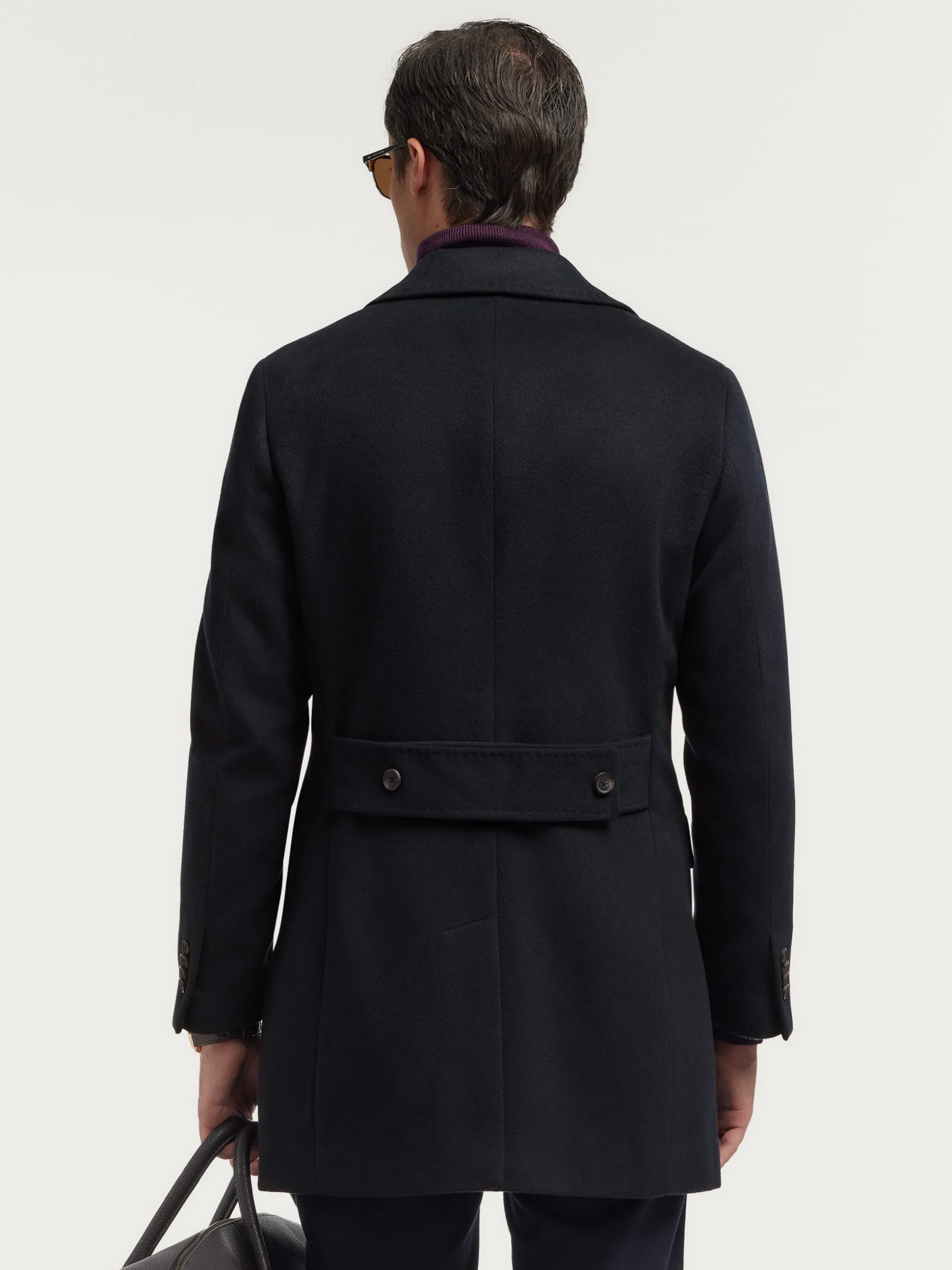 Abrigo largo de corte regular fit que cuenta con cuello y solapa, cierre central cruzado, ajuste martingala en la cintura-espalda, bolsillo de ojal en el pecho y dos bolsillos de parche en la cintura. Pinzas en el frontal y manga con terminación de botones. Abertura en el bajo. Forrado en su interior con dos bolsillos.