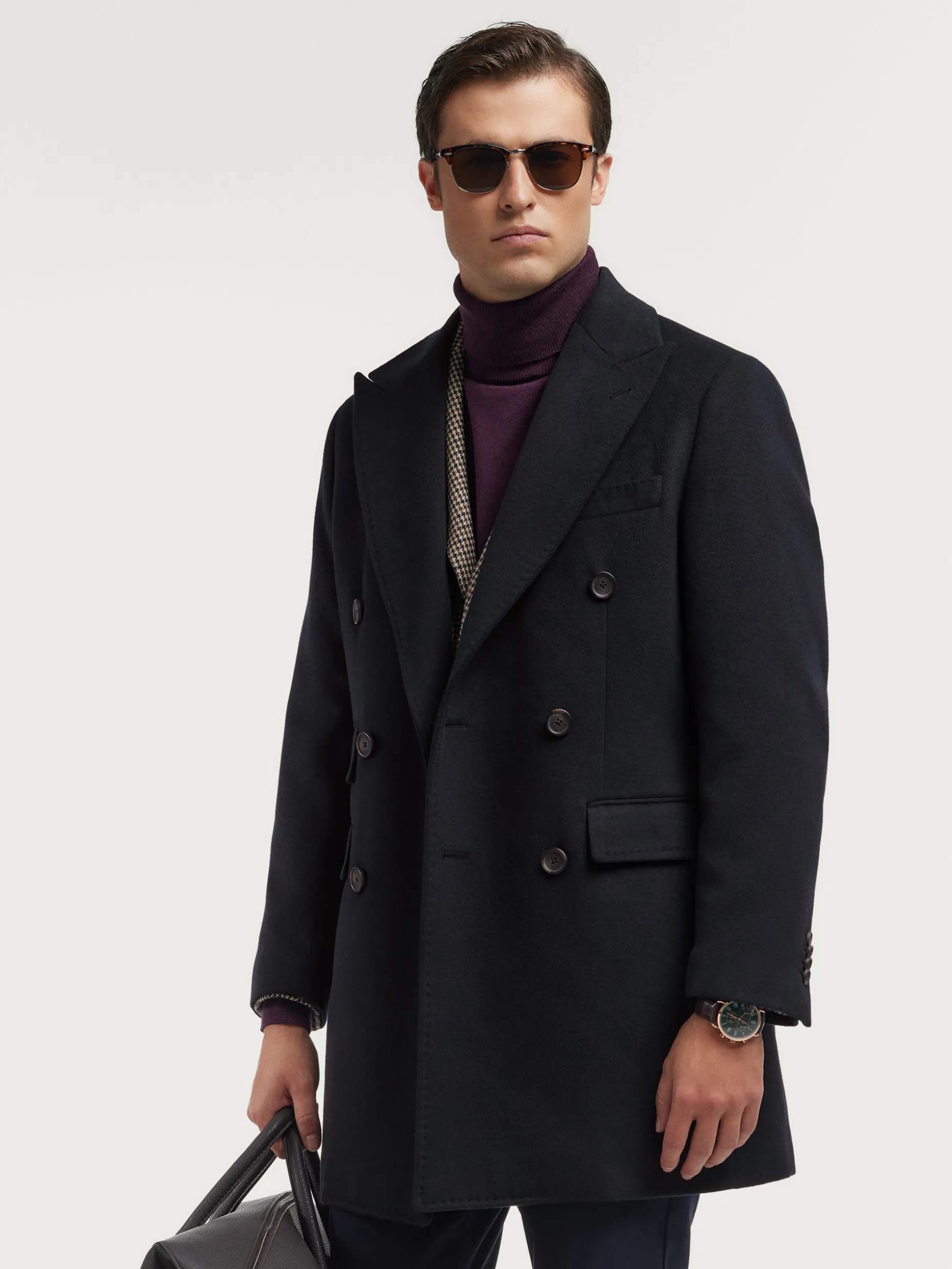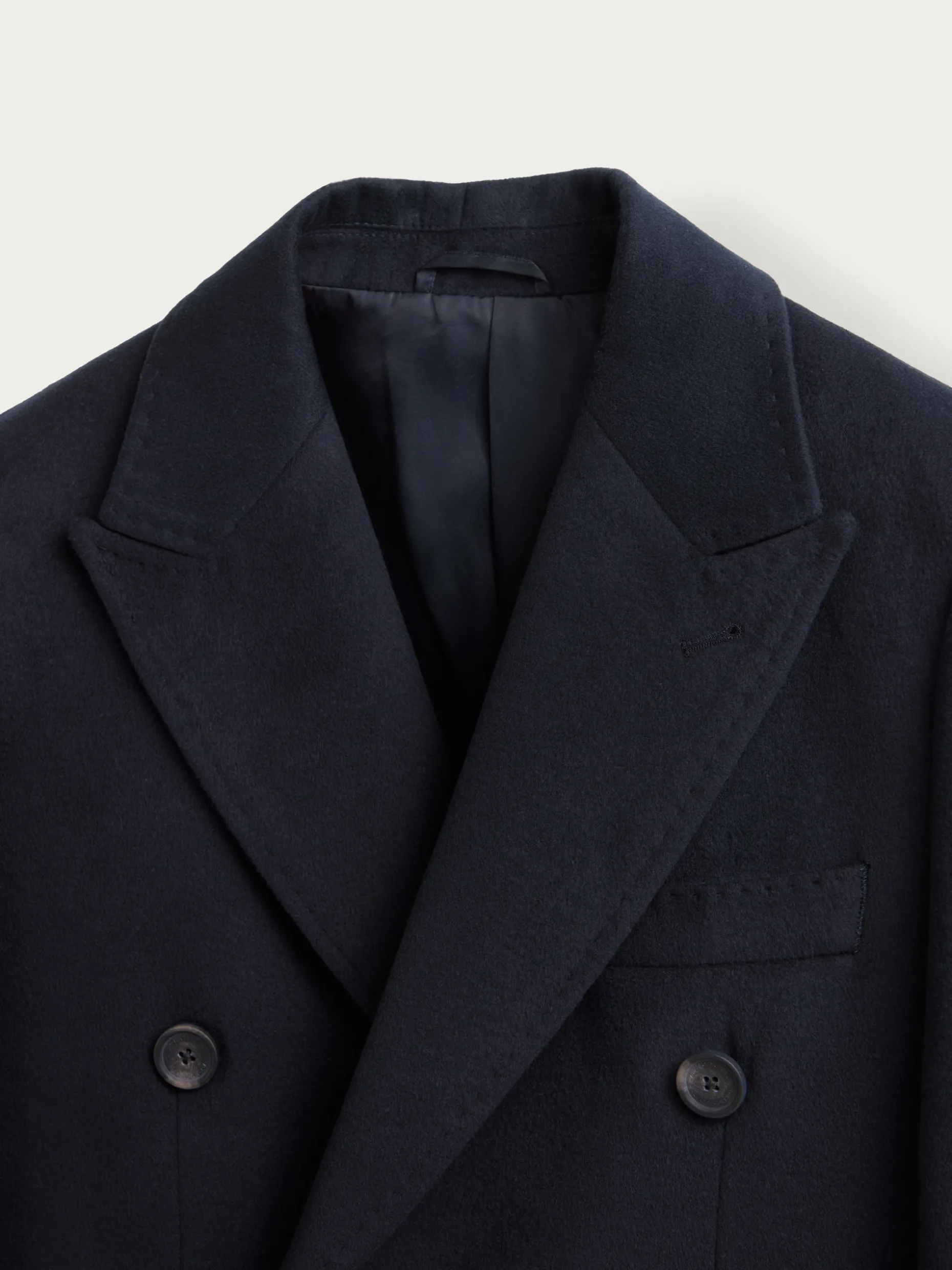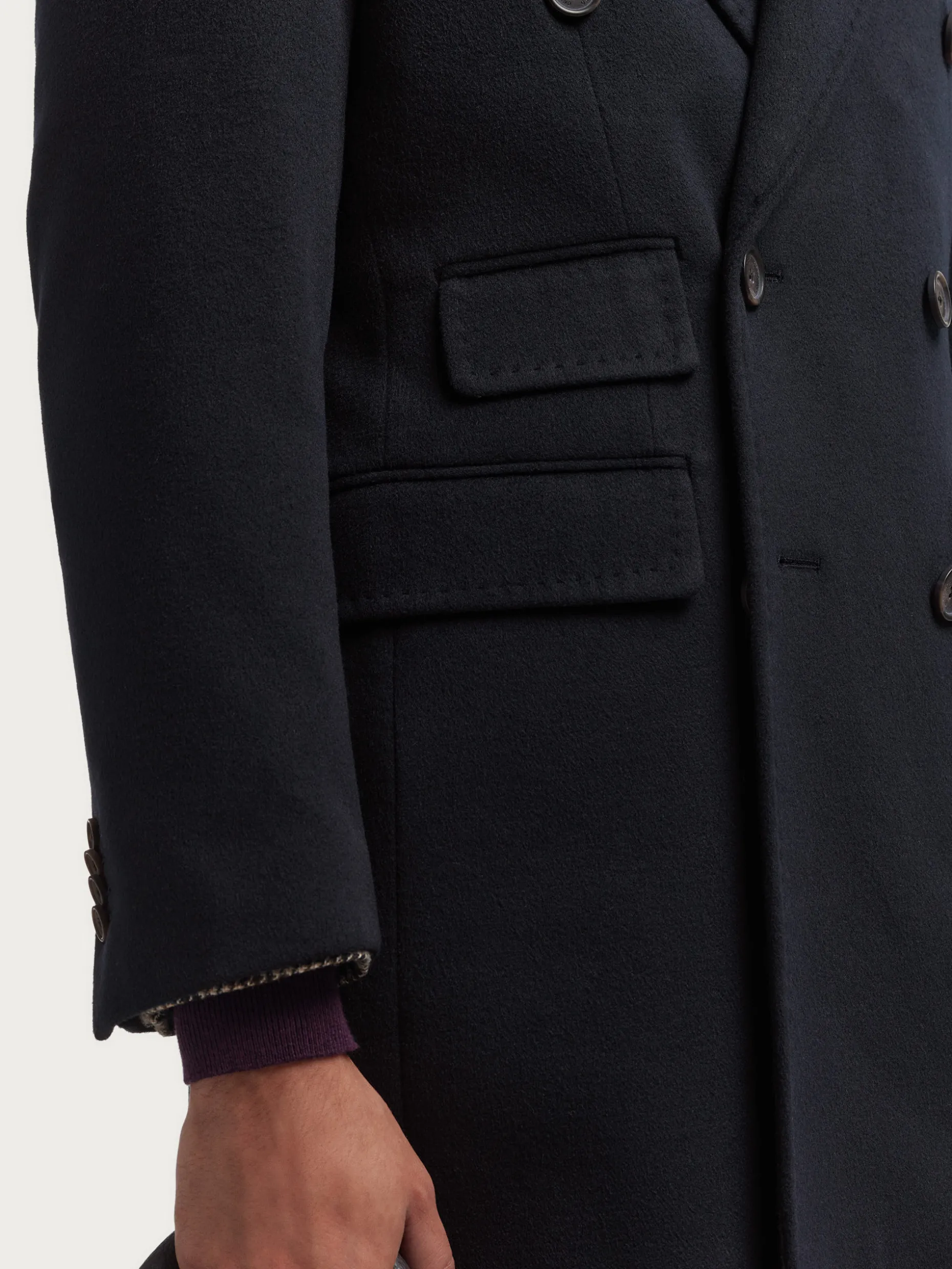 Abrigo largo de corte regular fit que cuenta con cuello y solapa, cierre central cruzado, ajuste martingala en la cintura-espalda, bolsillo de ojal en el pecho y dos bolsillos de parche en la cintura. Pinzas en el frontal y manga con terminación de botones. Abertura en el bajo. Forrado en su interior con dos bolsillos.