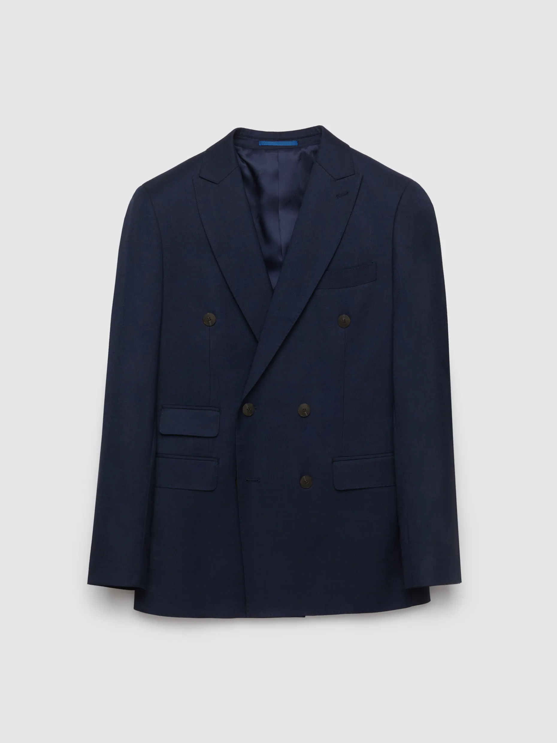 Americana con tejido fi fil de cierre central cruzado y con cuello y solapa. Bolsillo de ojal en el pecho, tres bolsillos de solapa en la cintura y puños con botones en su terminación. Pinzas en el delantero. Interior forrado y con bolsillos.