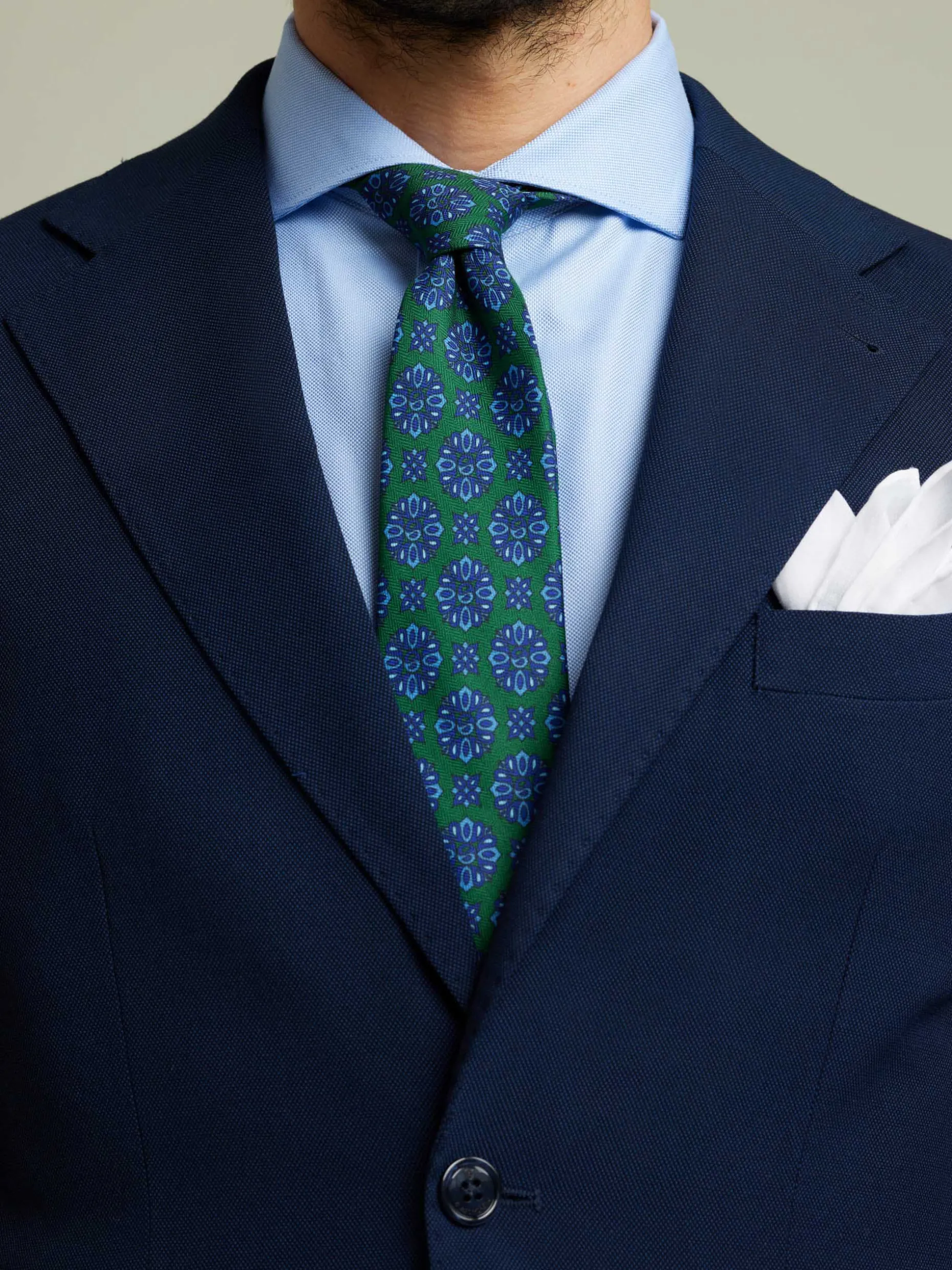 Americana con cuello y solapa ligeramente más ancha. Cierre central mediante dos botones, bolsillo de ojal en el pecho, tres bolsillos de solapa en la cintura con las tapetas inclinadas y puños con botones decorativos. Aporta un extra de confort al no contar con hombreras. Interior forrado y con bolsillos.