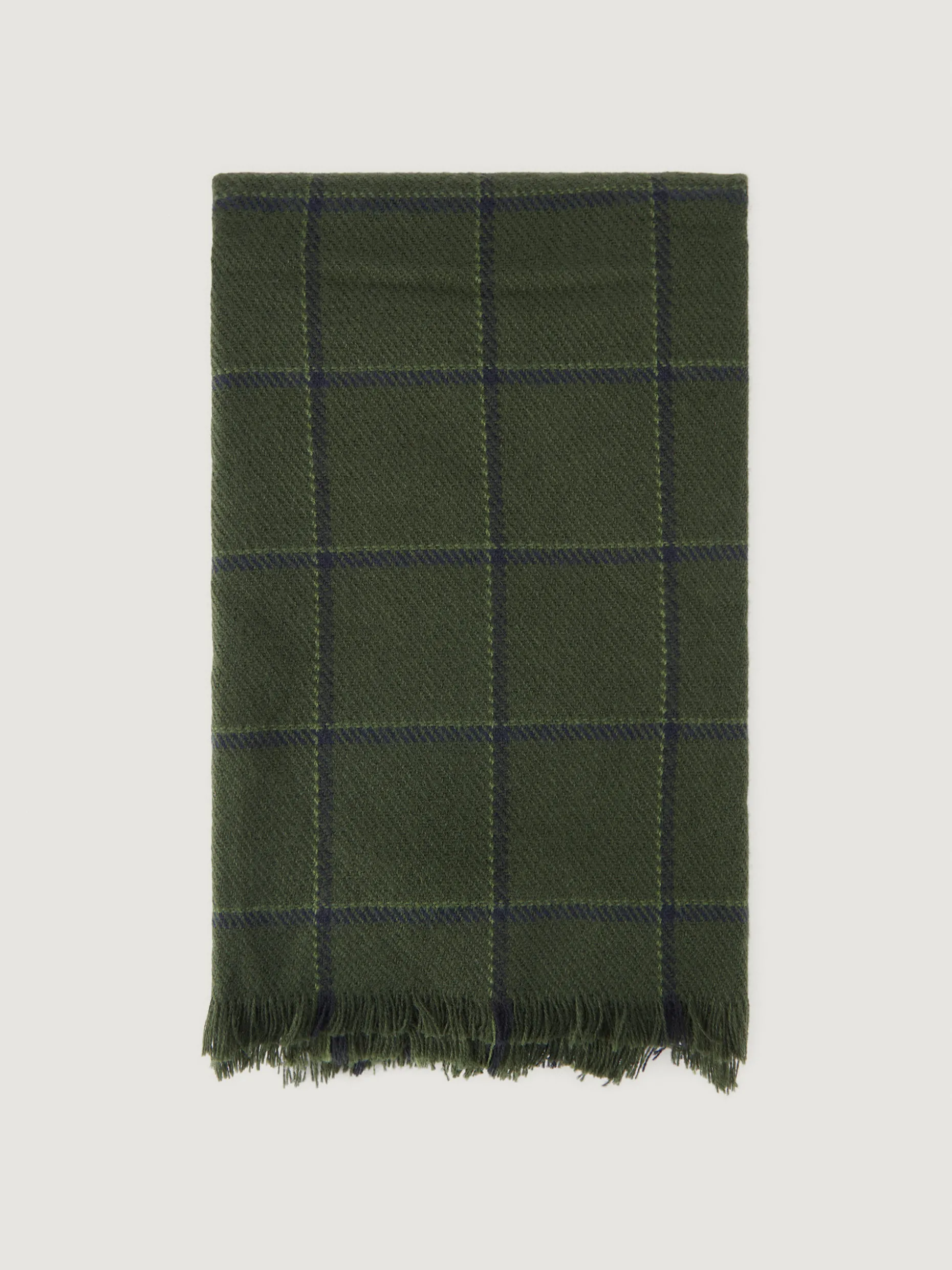 Bufandas con diseño de cuadros confeccionada en 100% acrílico. Terminación de flecos decorativos y tacto suave.