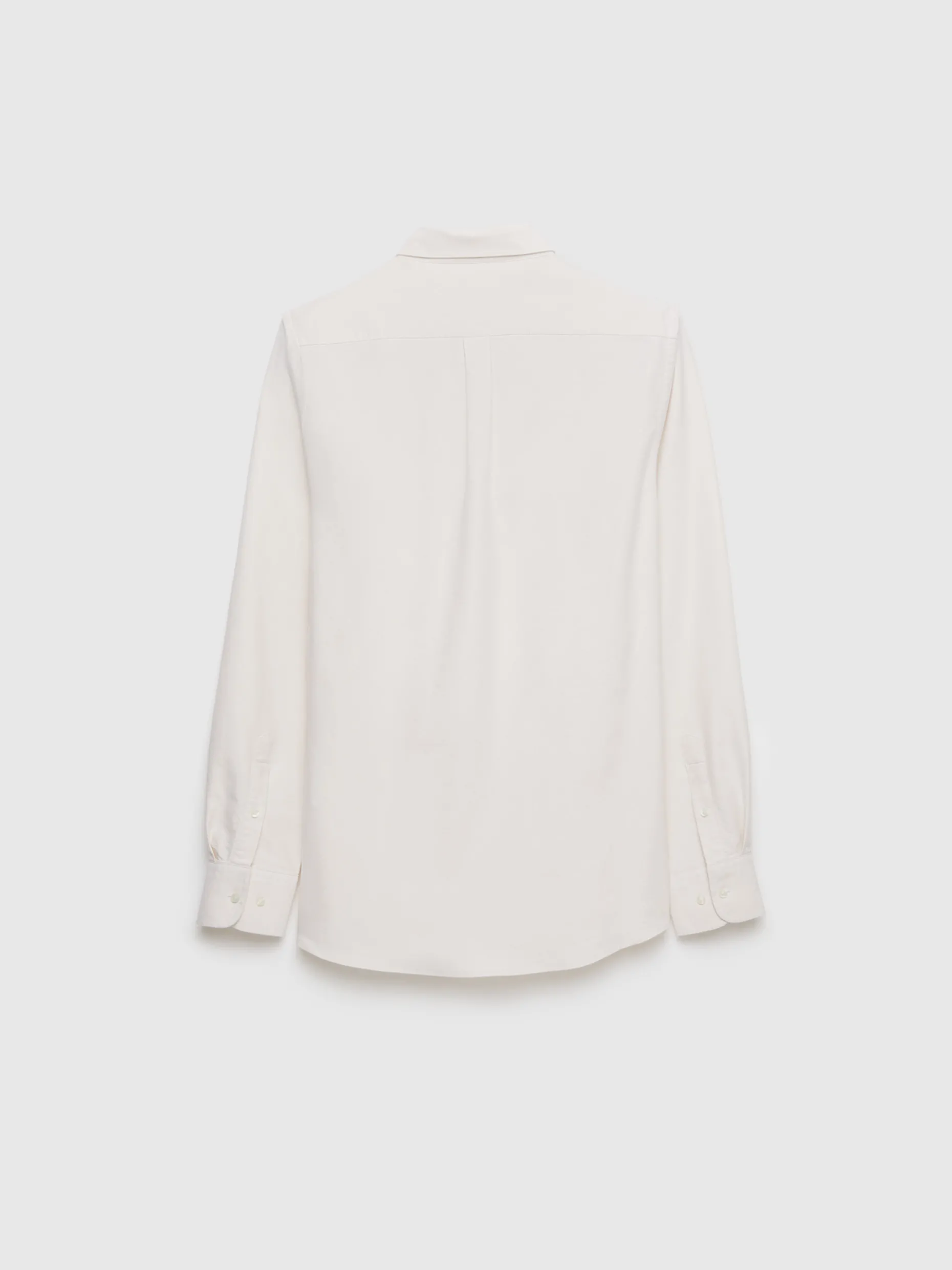 Camisa confeccionada en algodón con cuello clásico de botón, logo grabado en el frontal al tono y manga larga de puños simples. Corte regular fit.