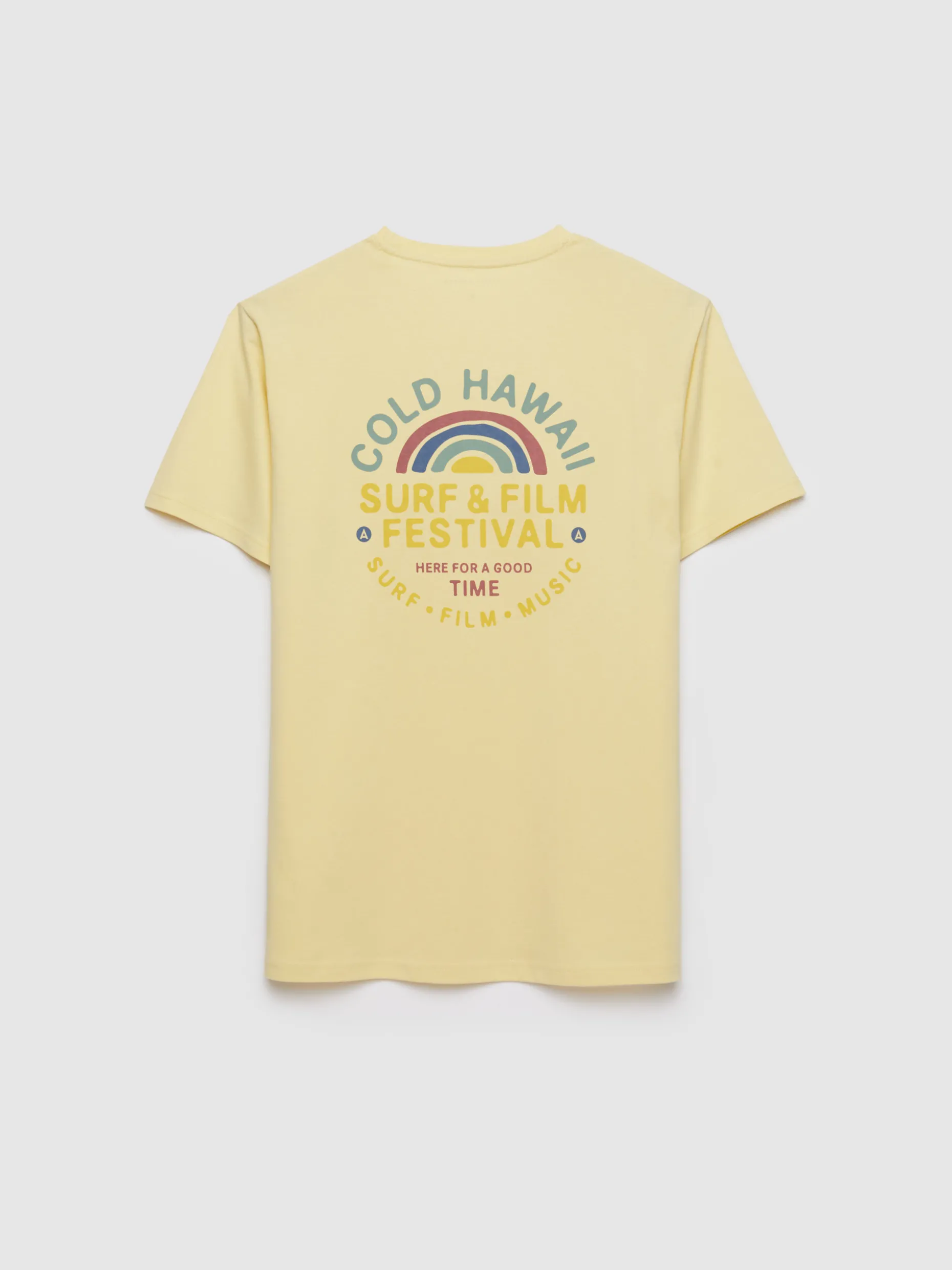 Camiseta con estampado personalizado a la altura del pecho y en la espalda. Cuenta con cuello redondo y manga corta. Corte regular fit.