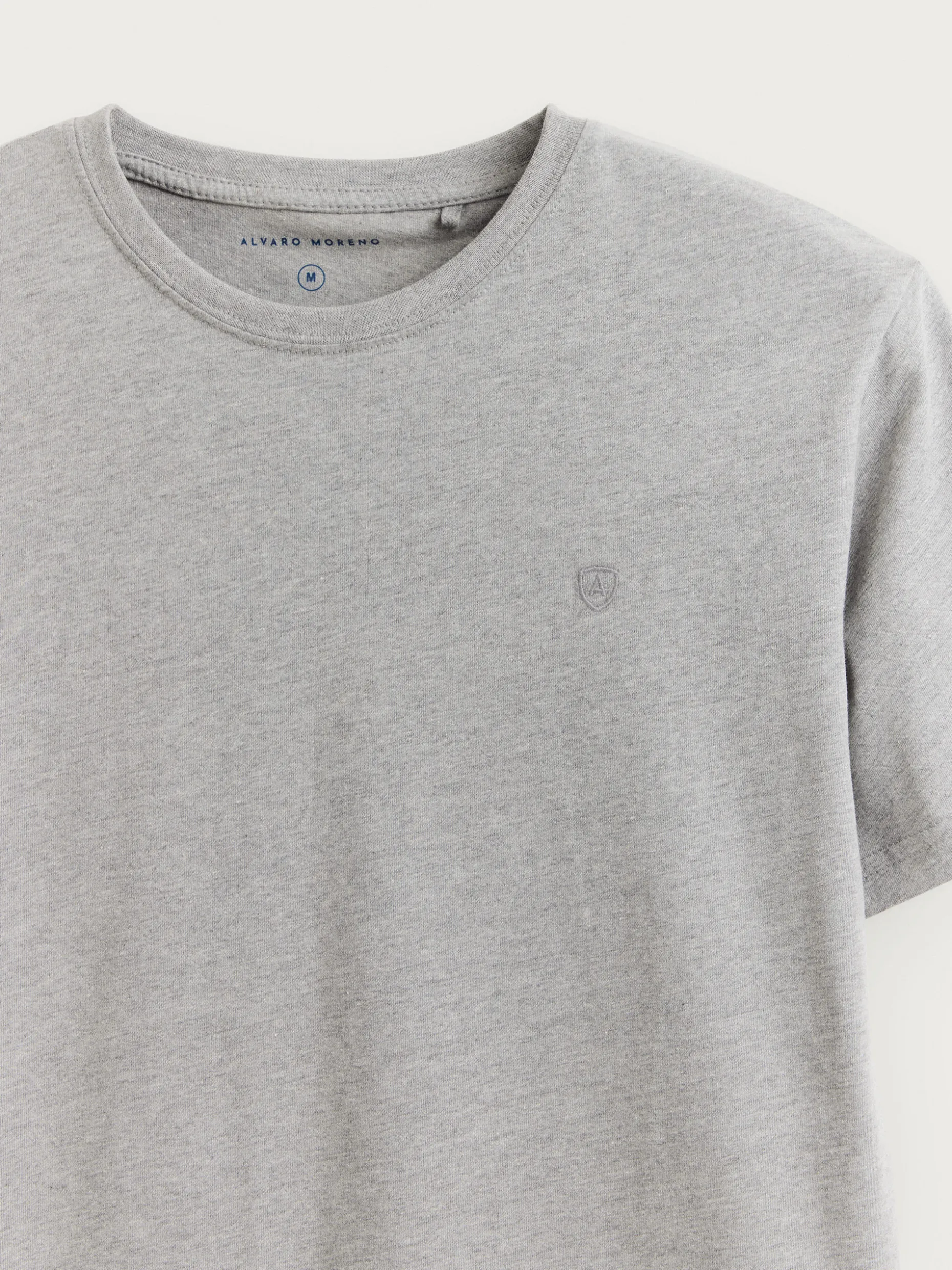 Camiseta confeccionada con tejido jaspeado. Cuenta con cuello redondo, manga corta y etiqueta canvas en el lateral. Corte regular fit.
