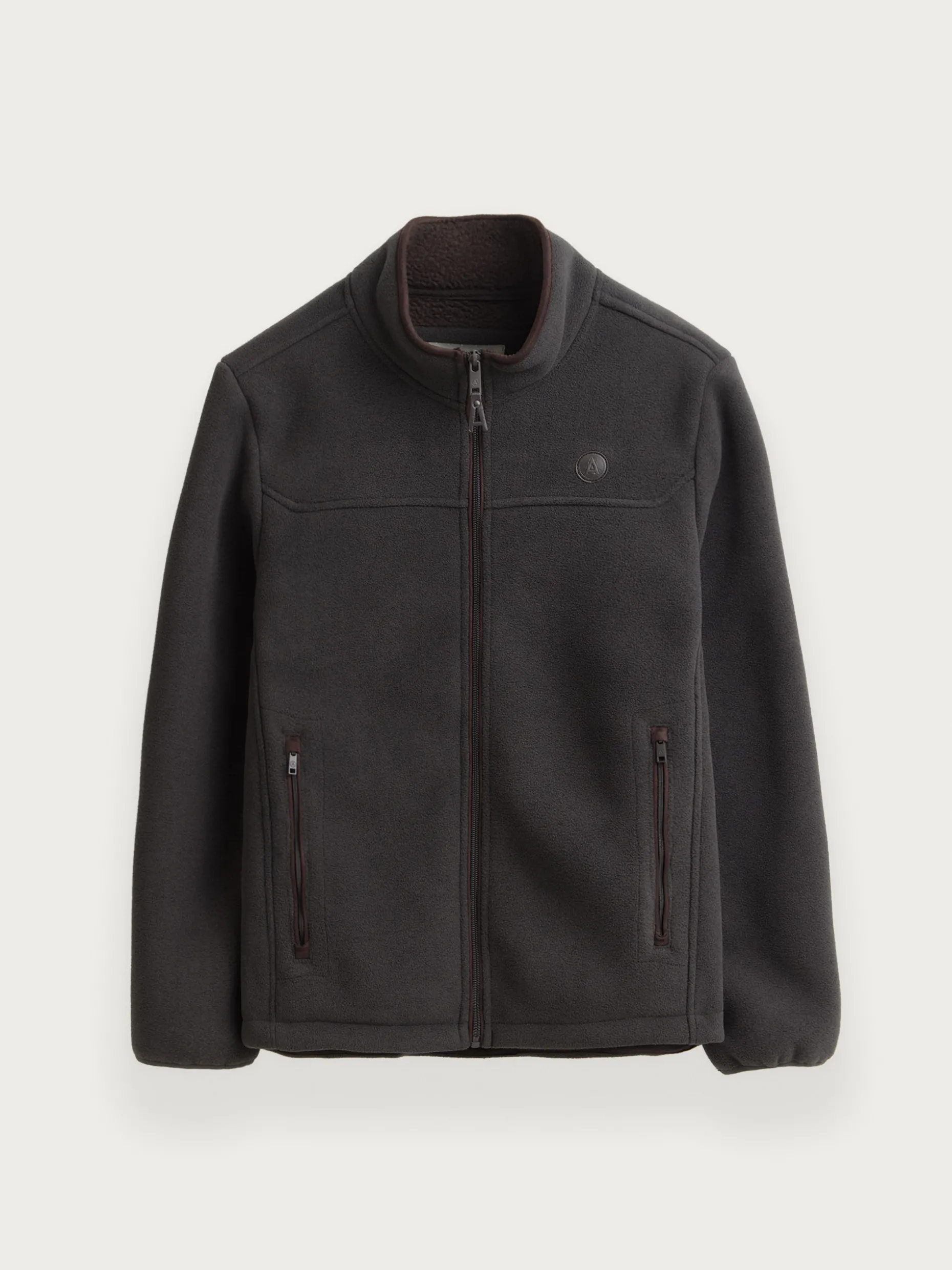 Cazadora confeccionado en tejido avivado en antelina en su exterior y forrado en su interior en borreguillo. Cuenta con cierre central mediante cremallera personalizada, dos bolsillos en su exterior y bolsillo interior. Corte regular fit.