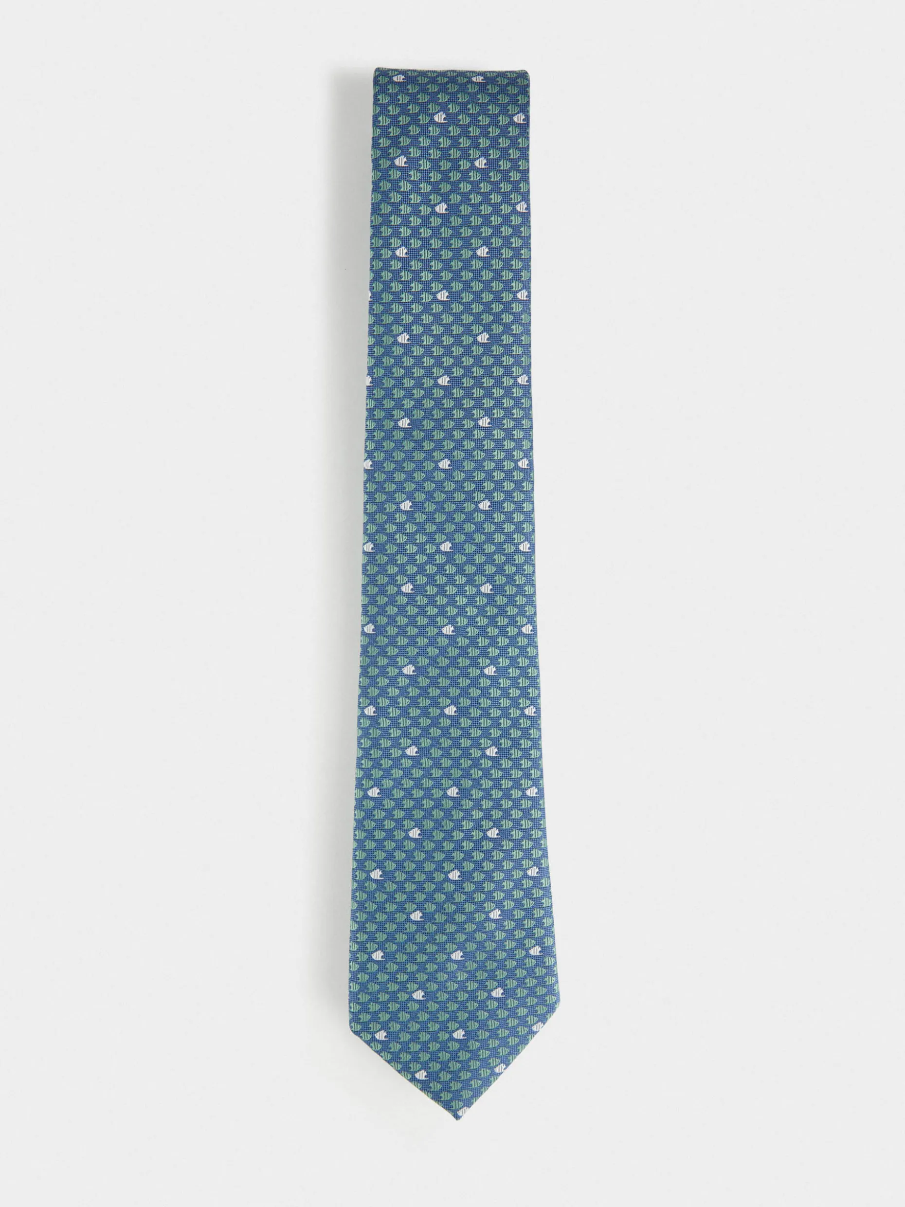 Corbata estilo jacquard con diseño estampado a contraste confeccionada en 100% poliéster. Cuenta con el logo de la marca grabado en el interior.