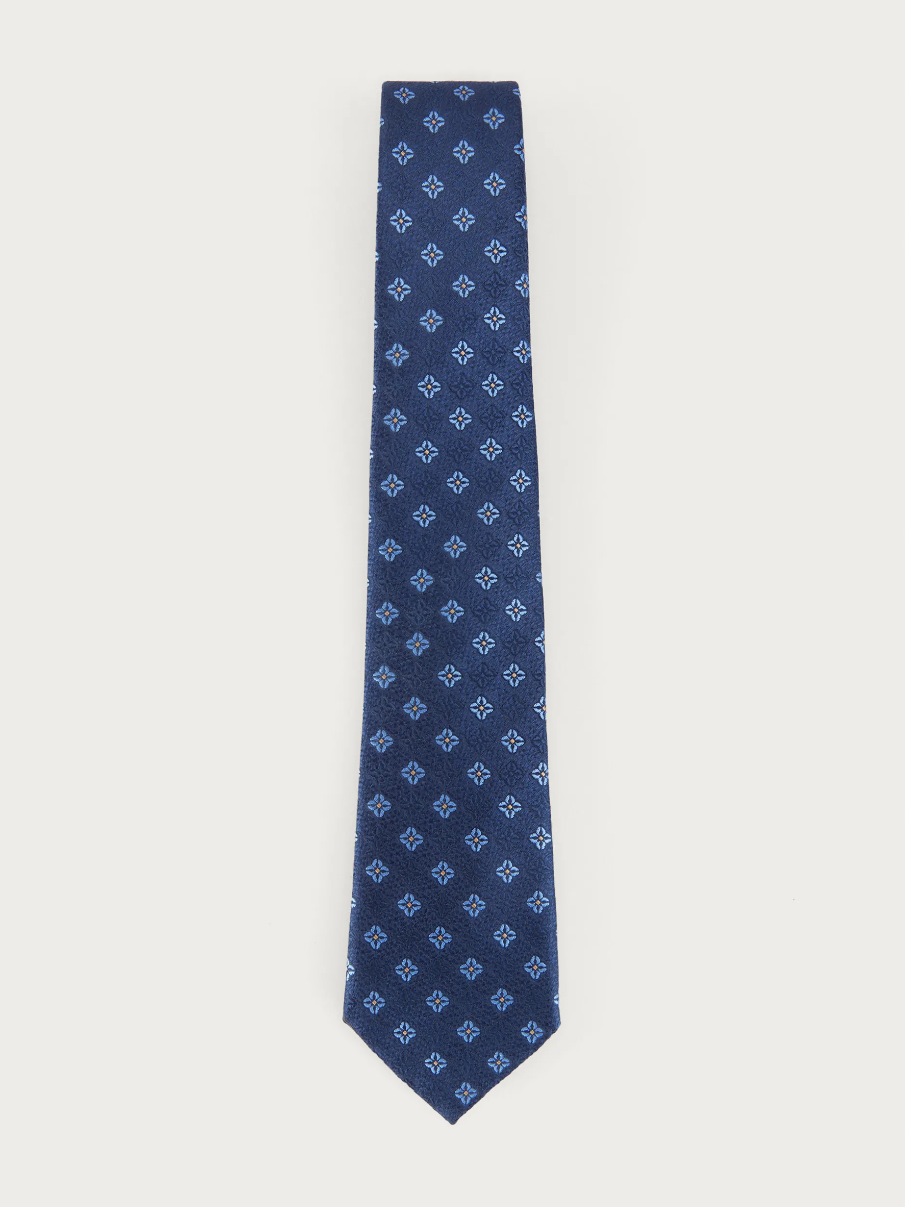 Corbata estilo jacquard con diseño estampado a contraste confeccionada en 100% poliéster. Cuenta con el logo de la marca grabado en el interior.