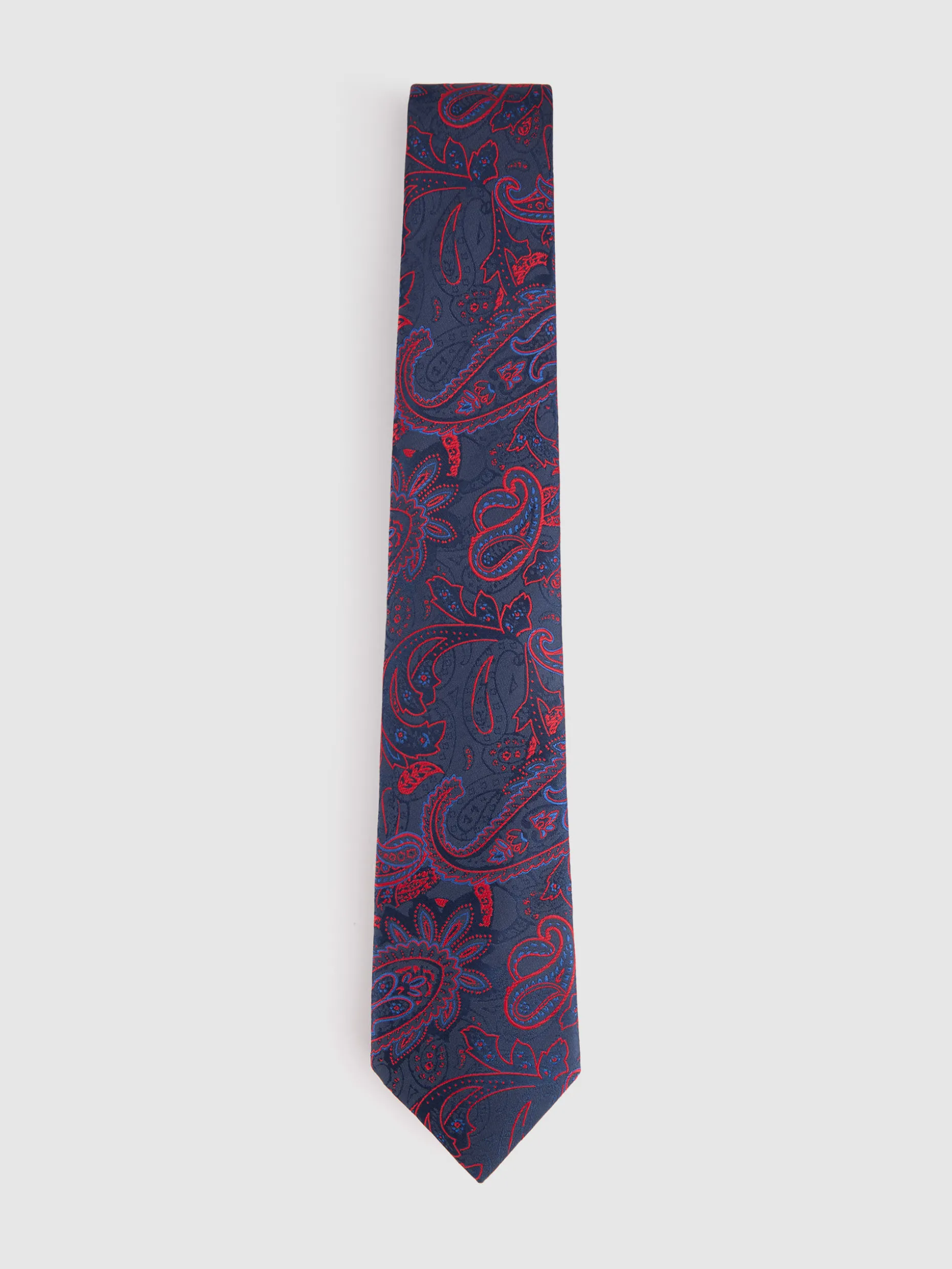 Corbata estilo jacquard con diseño estampado a contraste confeccionada en 100% poliéster. Cuenta con el logo de la marca grabado en el interior.