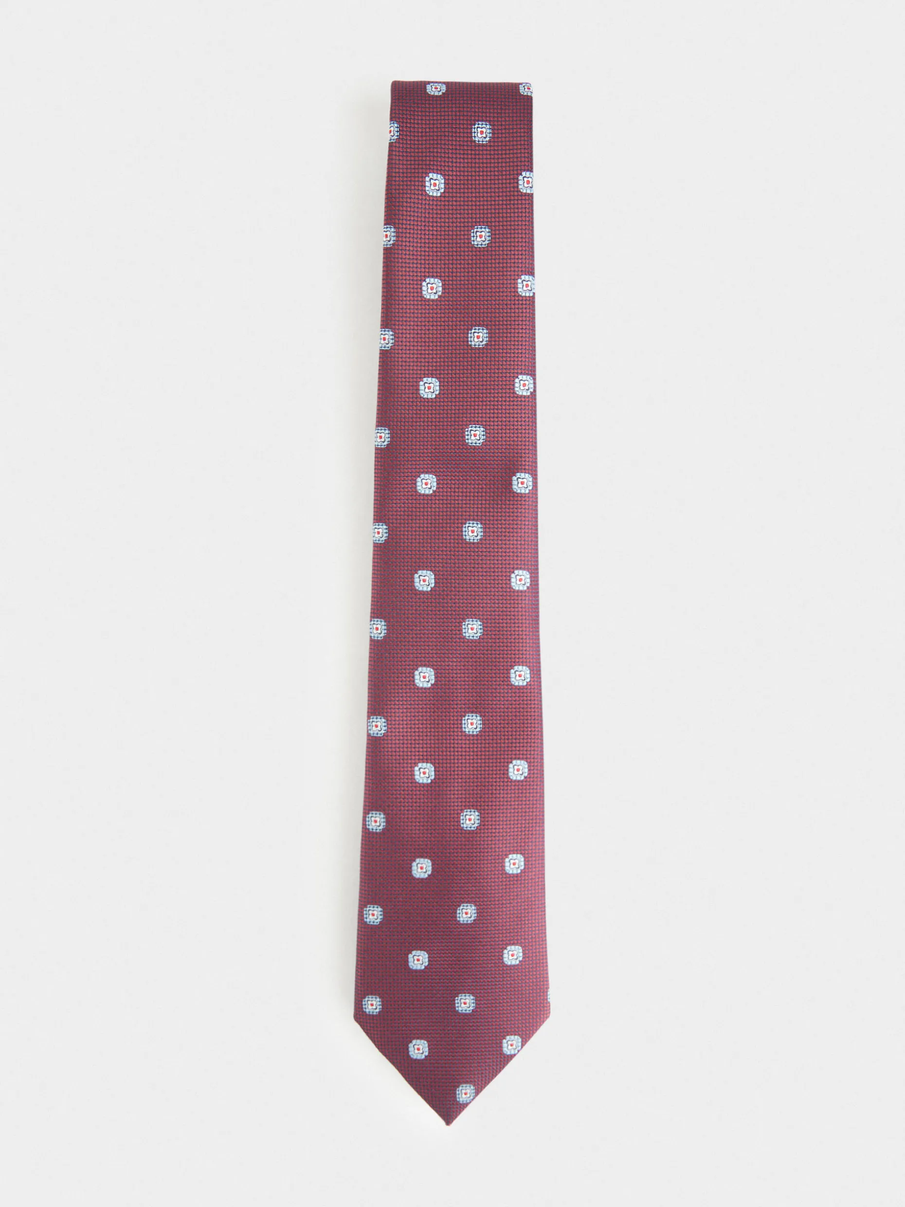 Corbata estilo jacquard con diseño estampado a contraste confeccionada en 100% poliéster. Cuenta con el logo de la marca grabado en el interior.