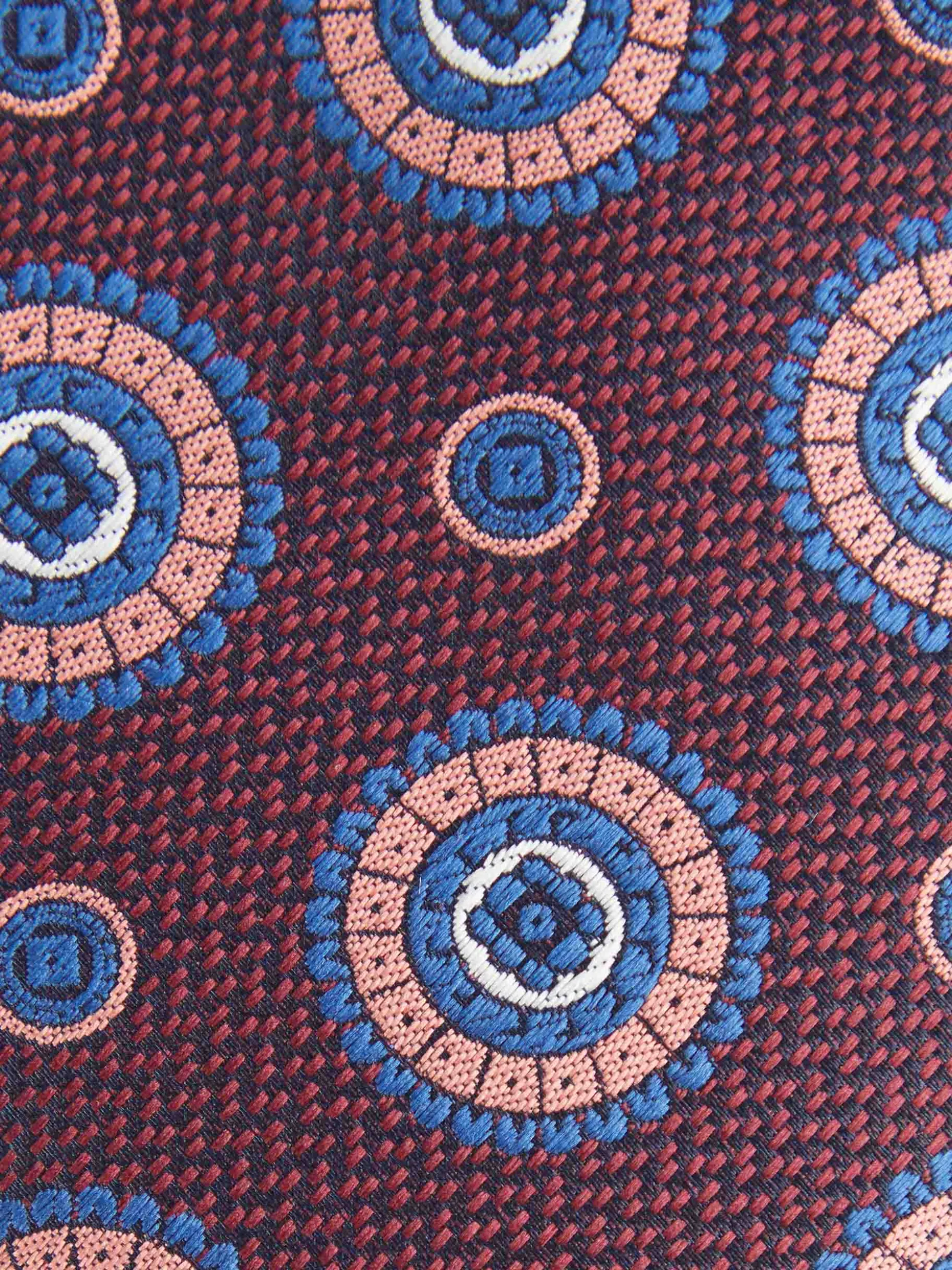 Corbata estilo jacquard con diseño estampado a contraste confeccionada en 100% poliéster. Cuenta con el logo de la marca grabado en el interior.
