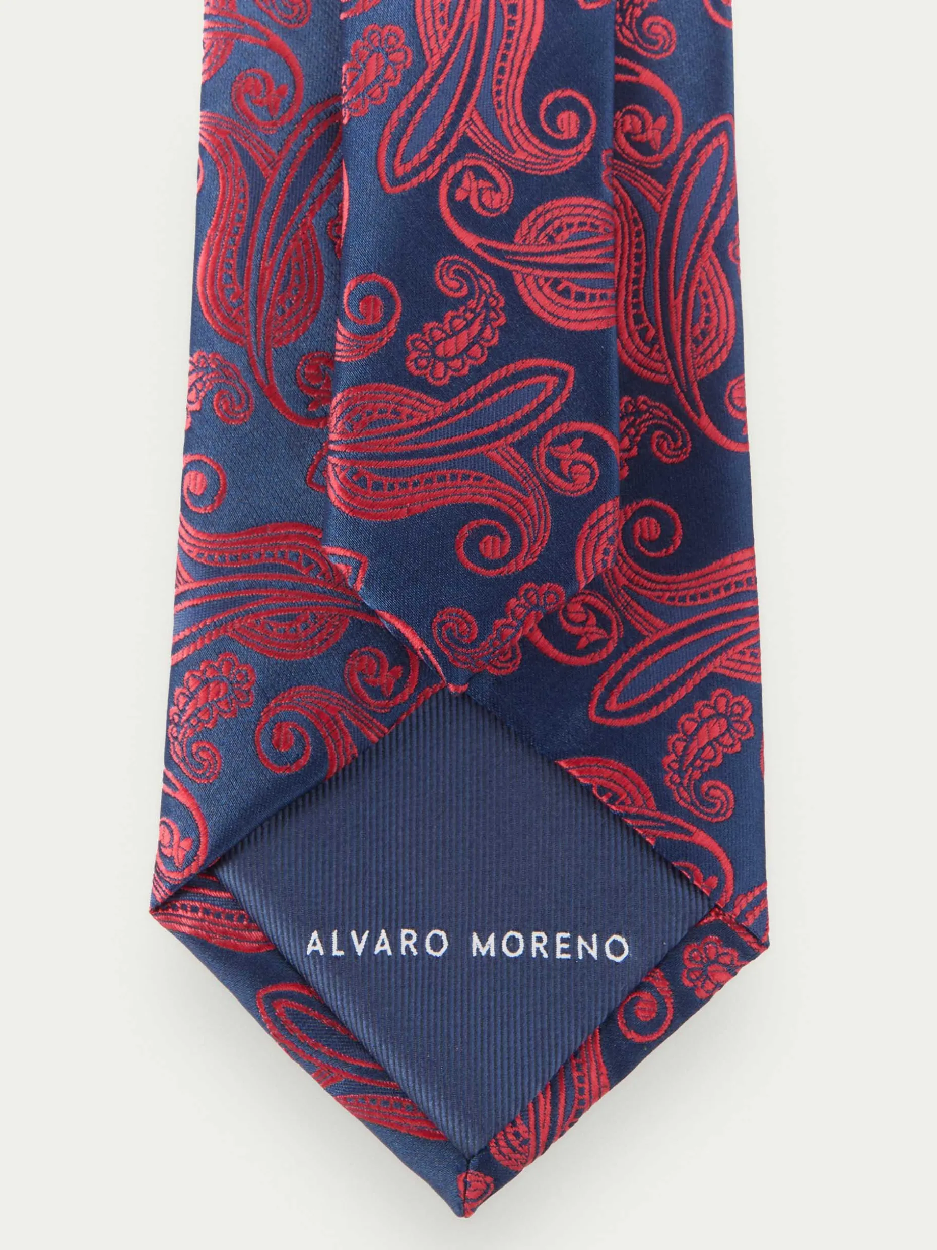 Corbata estilo jacquard con diseño estampado a contraste confeccionada en 100% poliéster. Cuenta con el logo de la marca grabado en el interior.