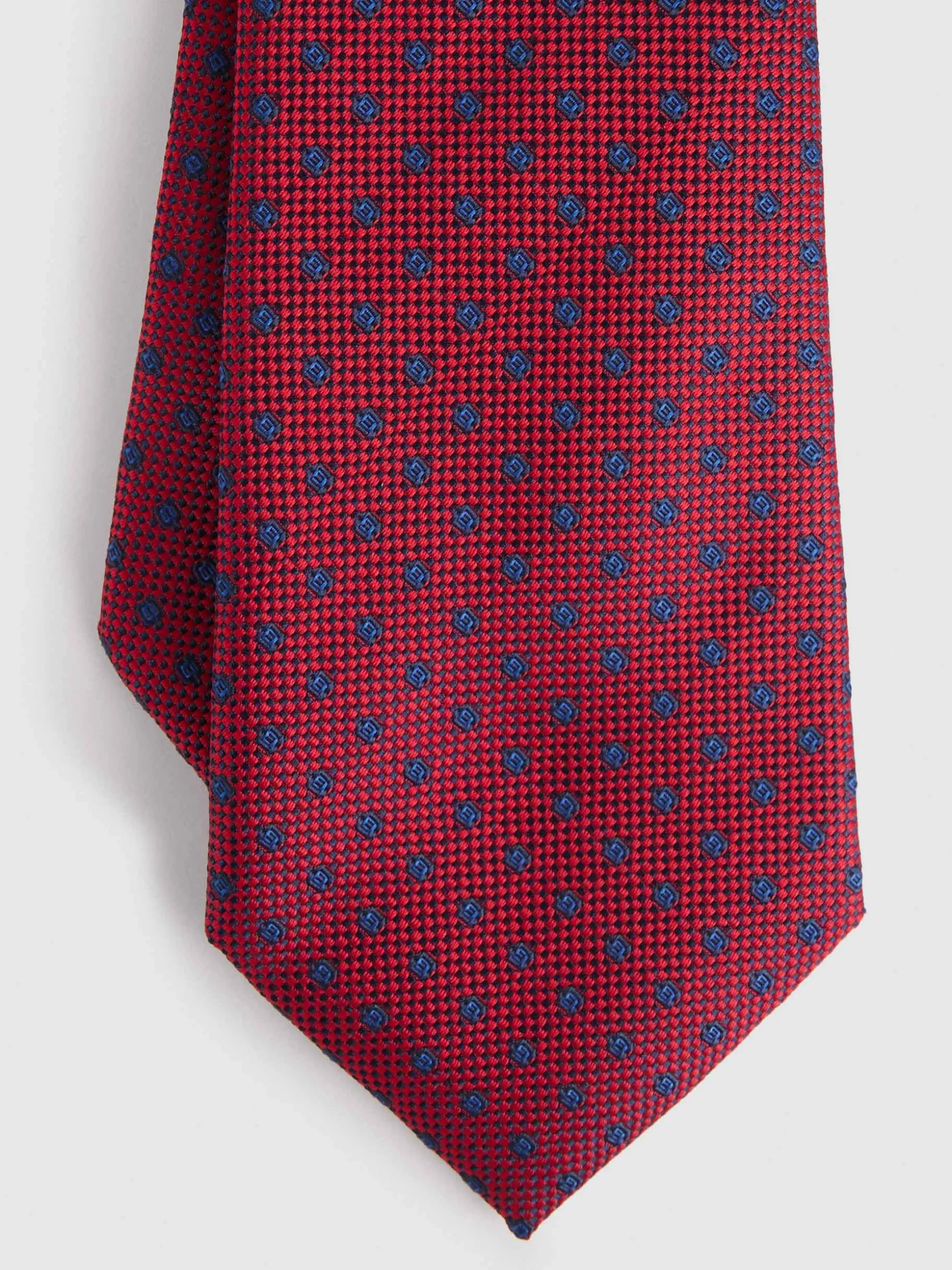 Corbata estilo jacquard con diseño estampado a contraste confeccionada en 100% poliéster. Cuenta con el logo de la marca grabado en el interior.