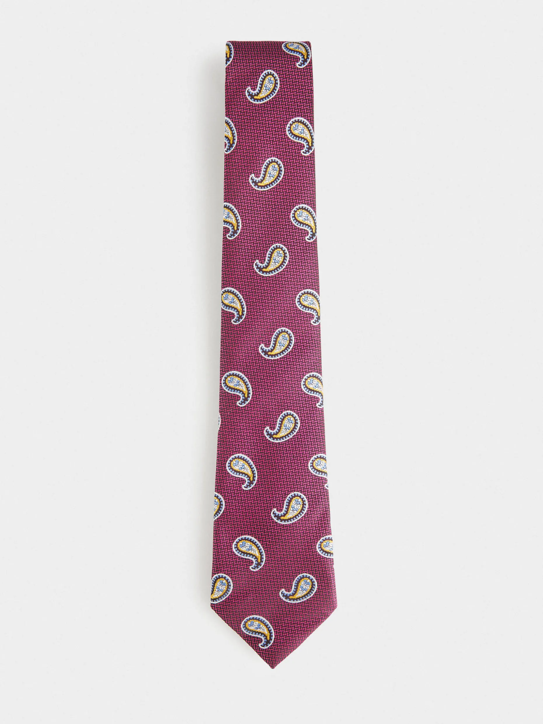 Corbata estilo jacquard con diseño estampado a contraste confeccionada en 100% poliéster. Cuenta con el logo de la marca grabado en el interior.