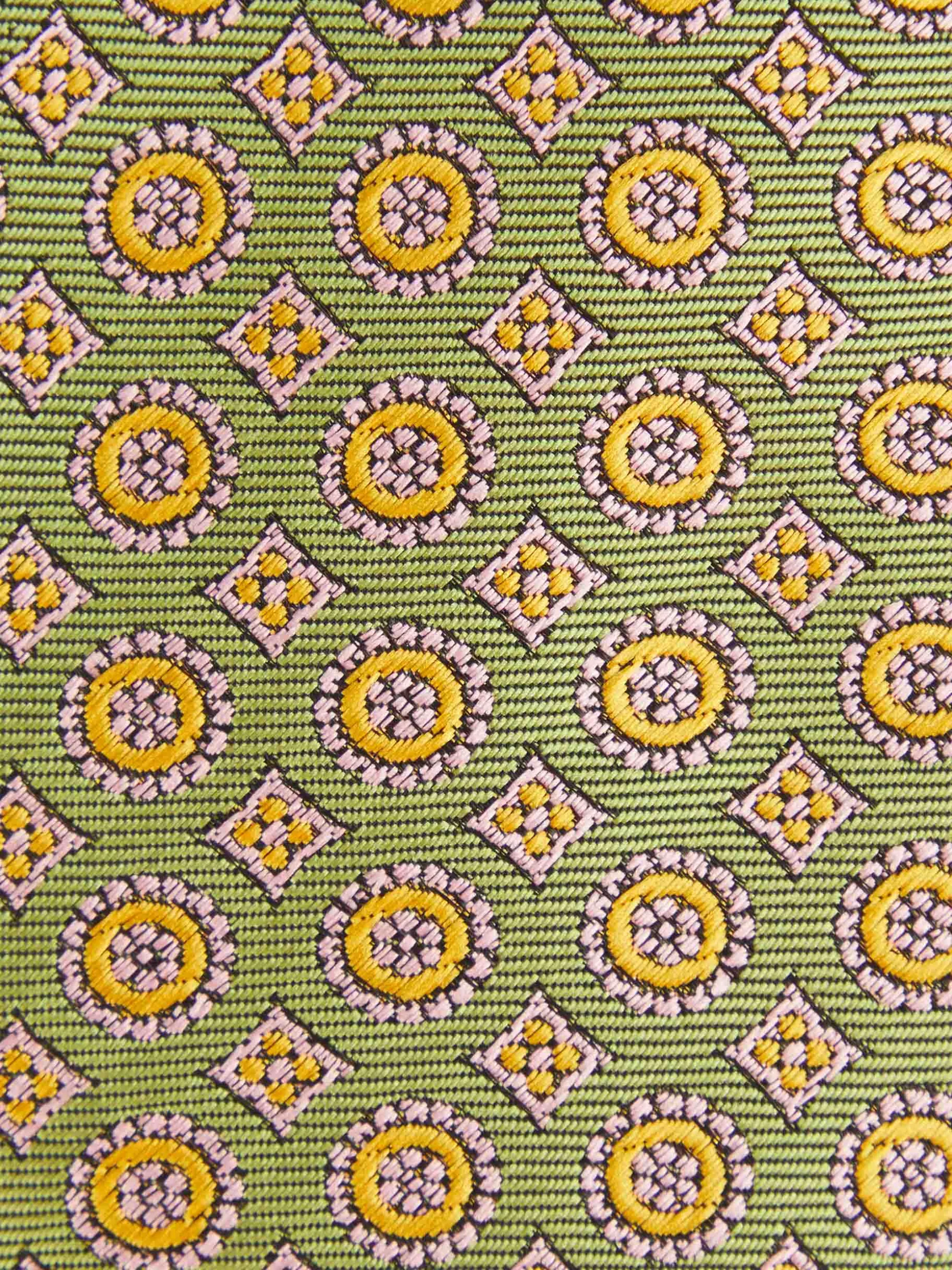 Corbata estilo jacquard con diseño estampado a contraste confeccionada en 100% poliéster. Cuenta con el logo de la marca grabado en el interior.