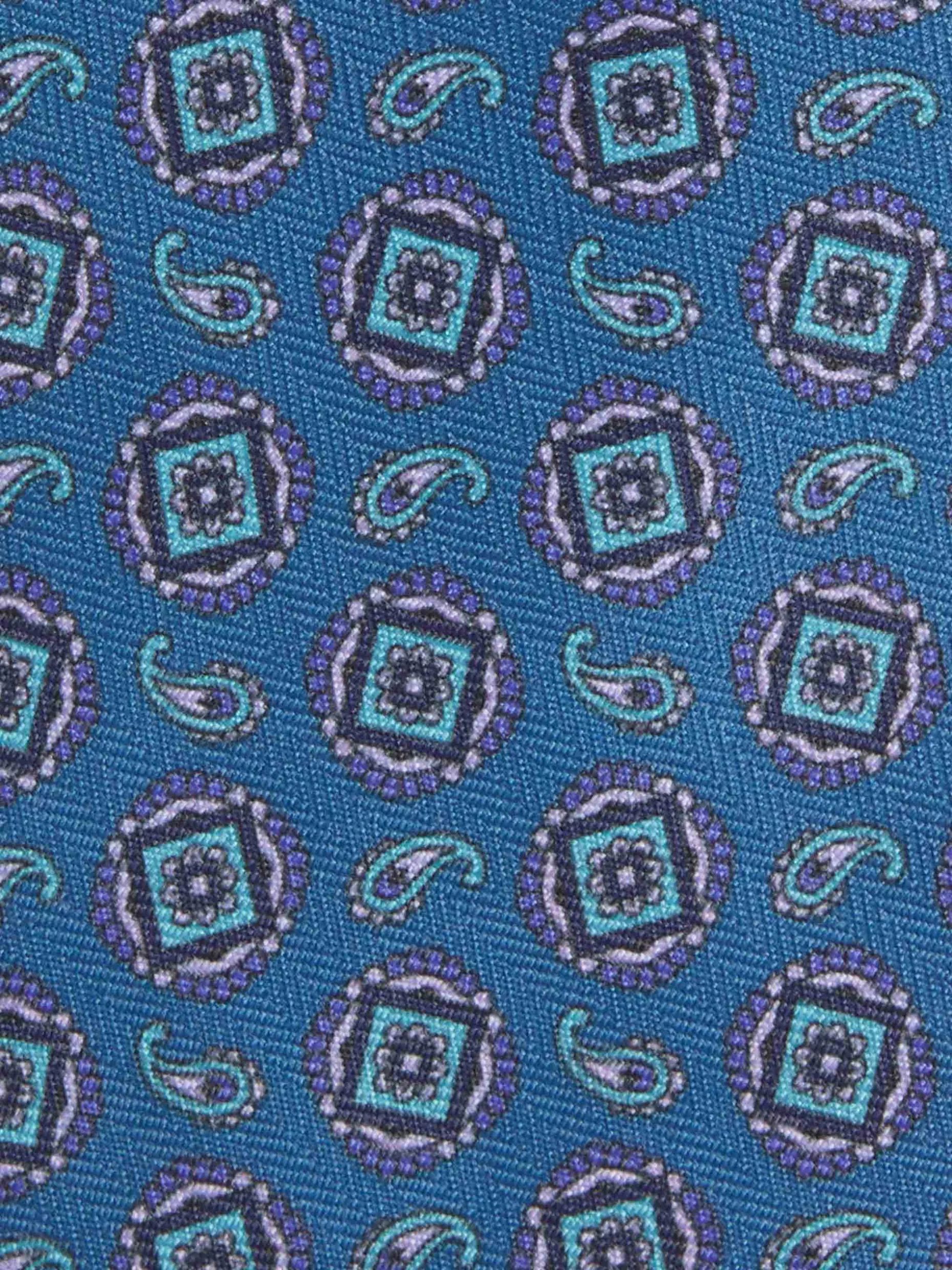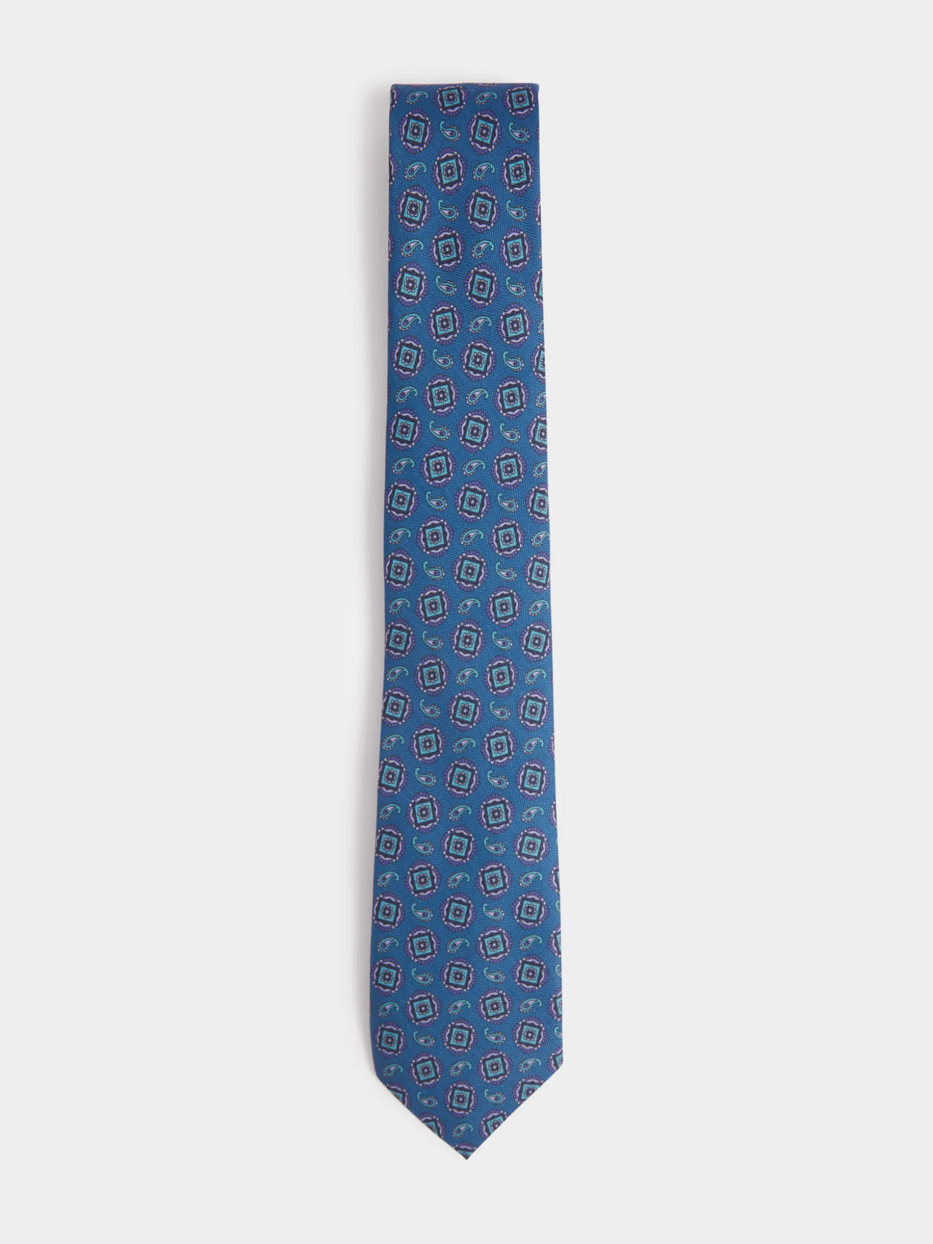 Corbata con diseño estampado personalizado confeccionada en 100% poliéster. Cuenta con el logo de la marca grabado en el interior.