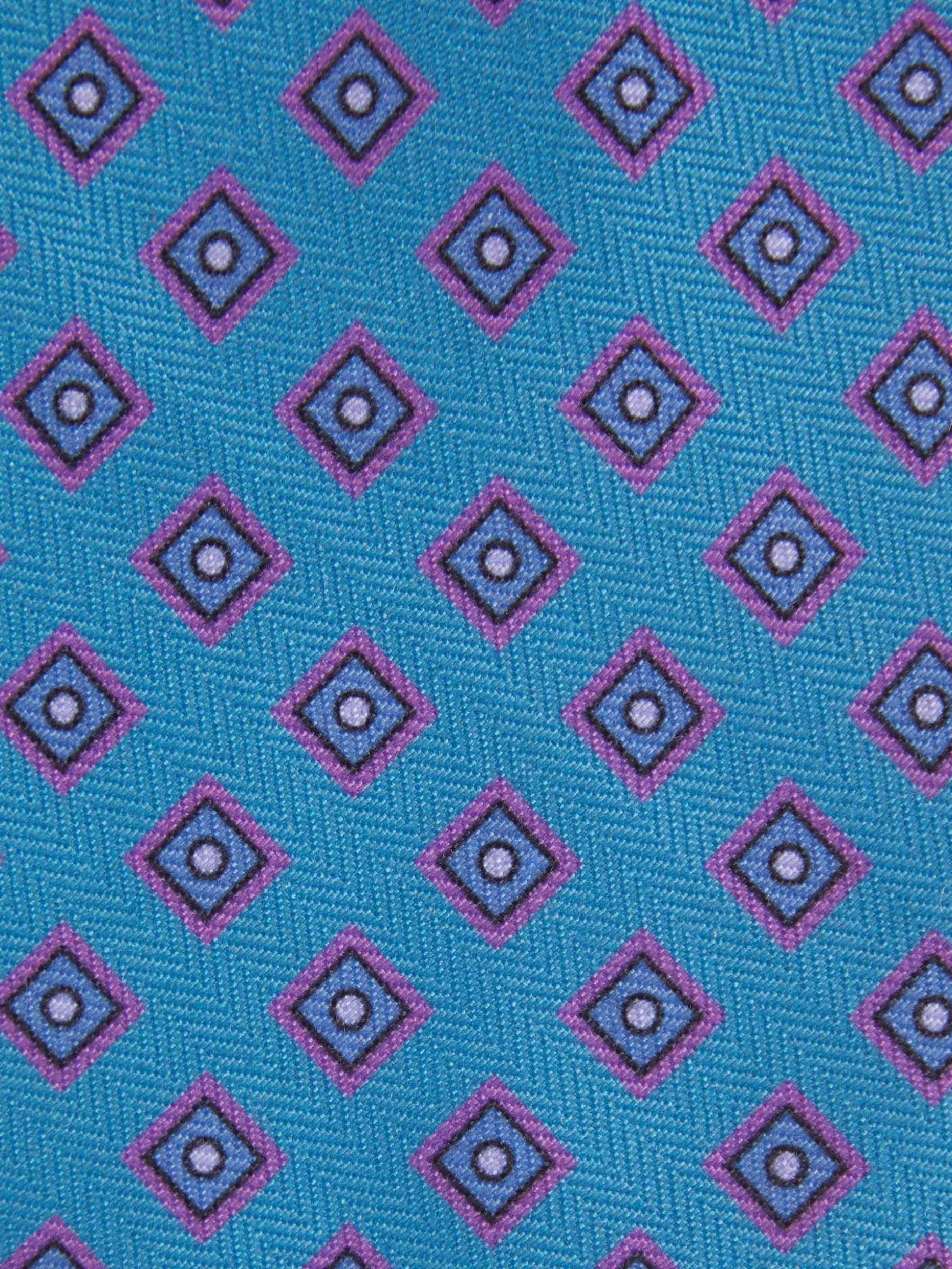 Corbata con diseño estampado personalizado confeccionada en 100% poliéster. Cuenta con el logo de la marca grabado en el interior.