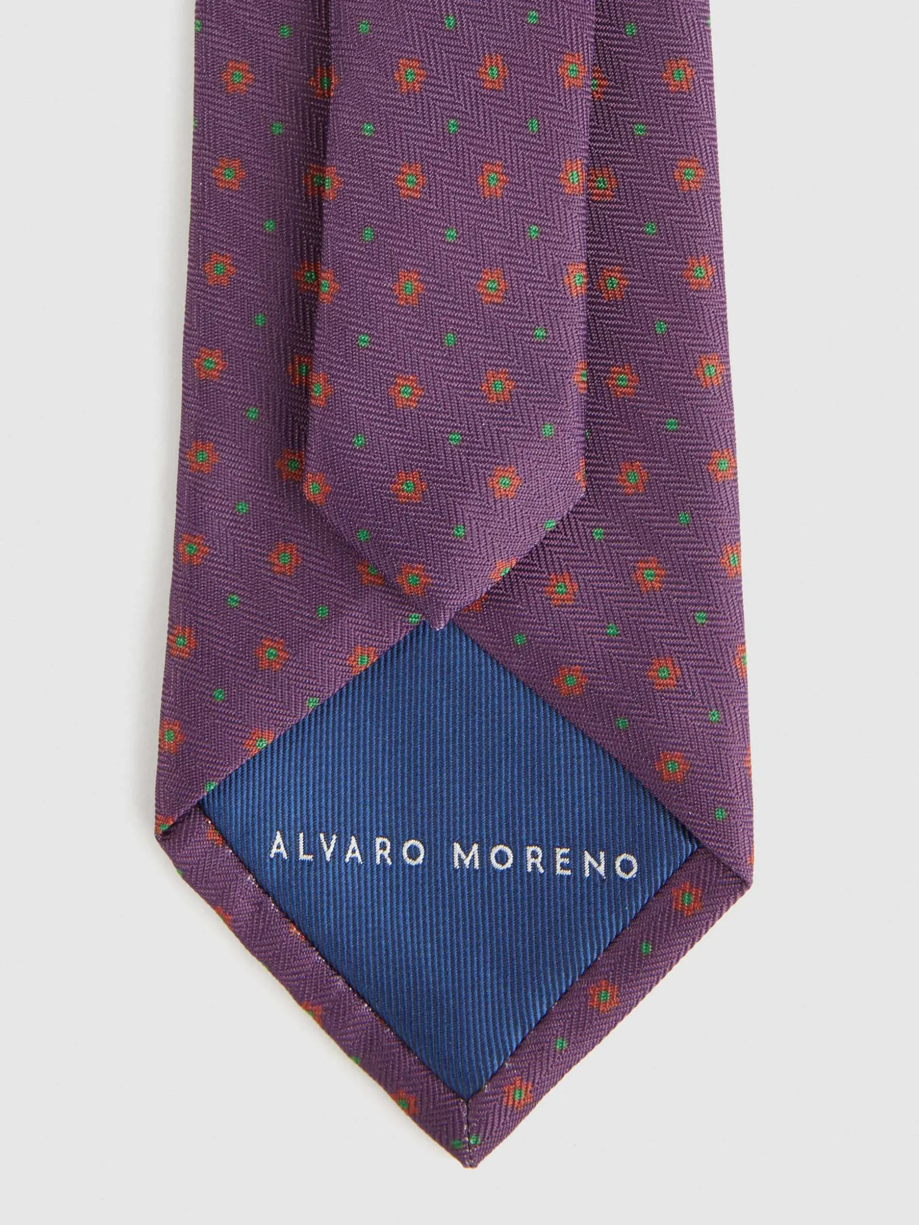 Corbata con diseño estampado personalizado confeccionada en 100% poliéster. Cuenta con el logo de la marca grabado en el interior.
