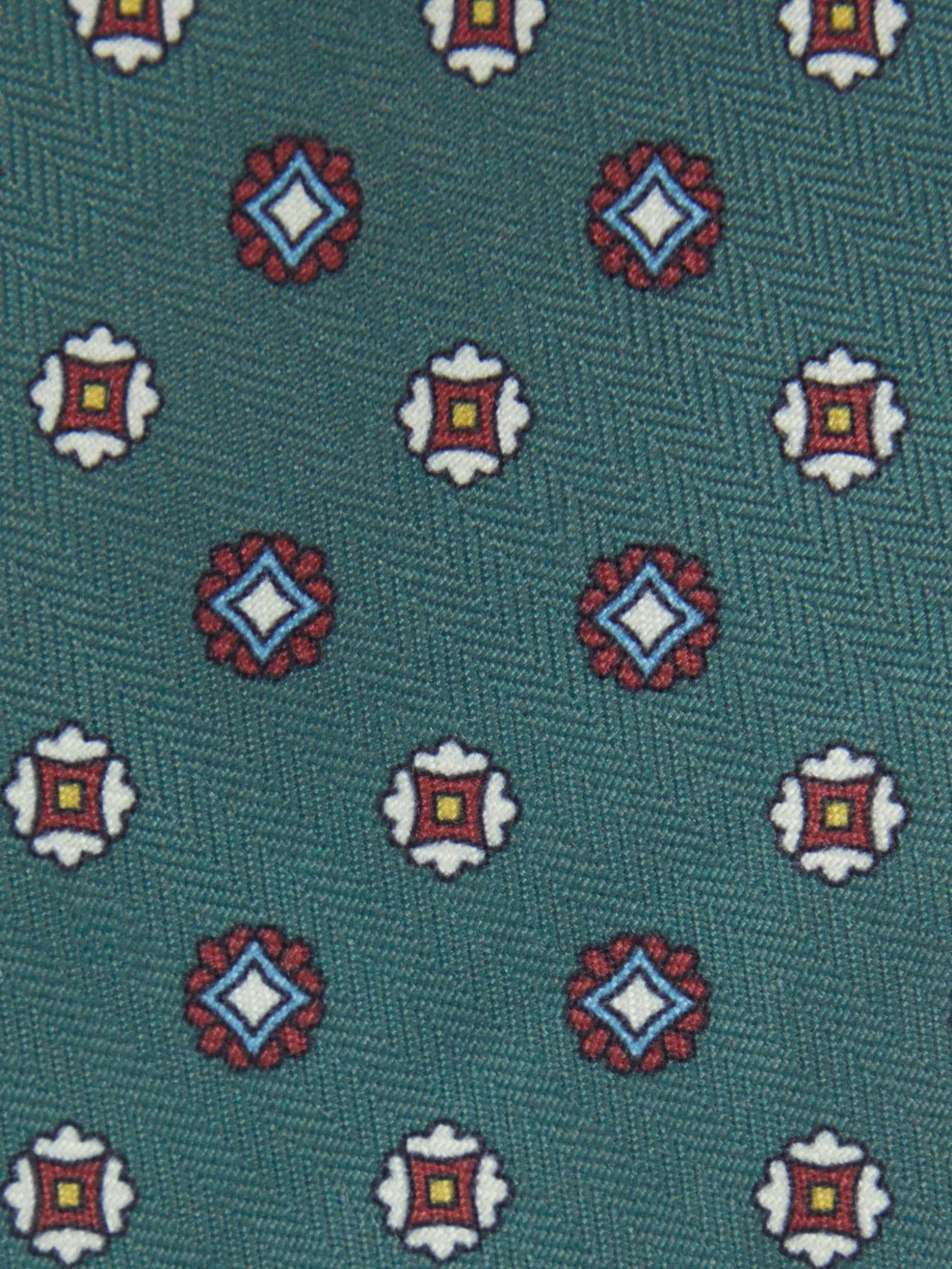 Corbata con diseño estampado personalizado confeccionada en 100% poliéster. Cuenta con el logo de la marca grabado en el interior.