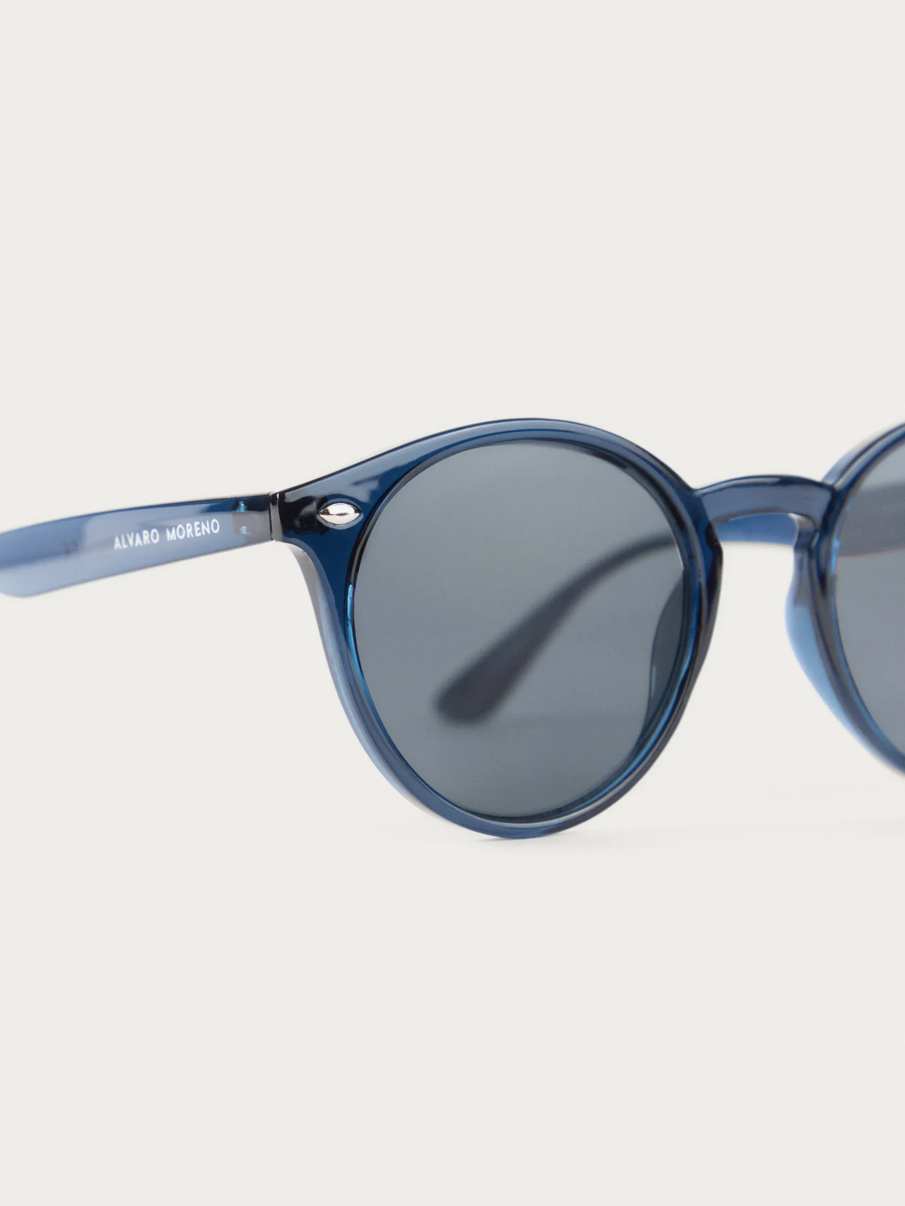 Gafas de sol de lentes redondas y patillas en efecto madera que cuentan con protección ultravioleta. Incluye caja y funda protectora.