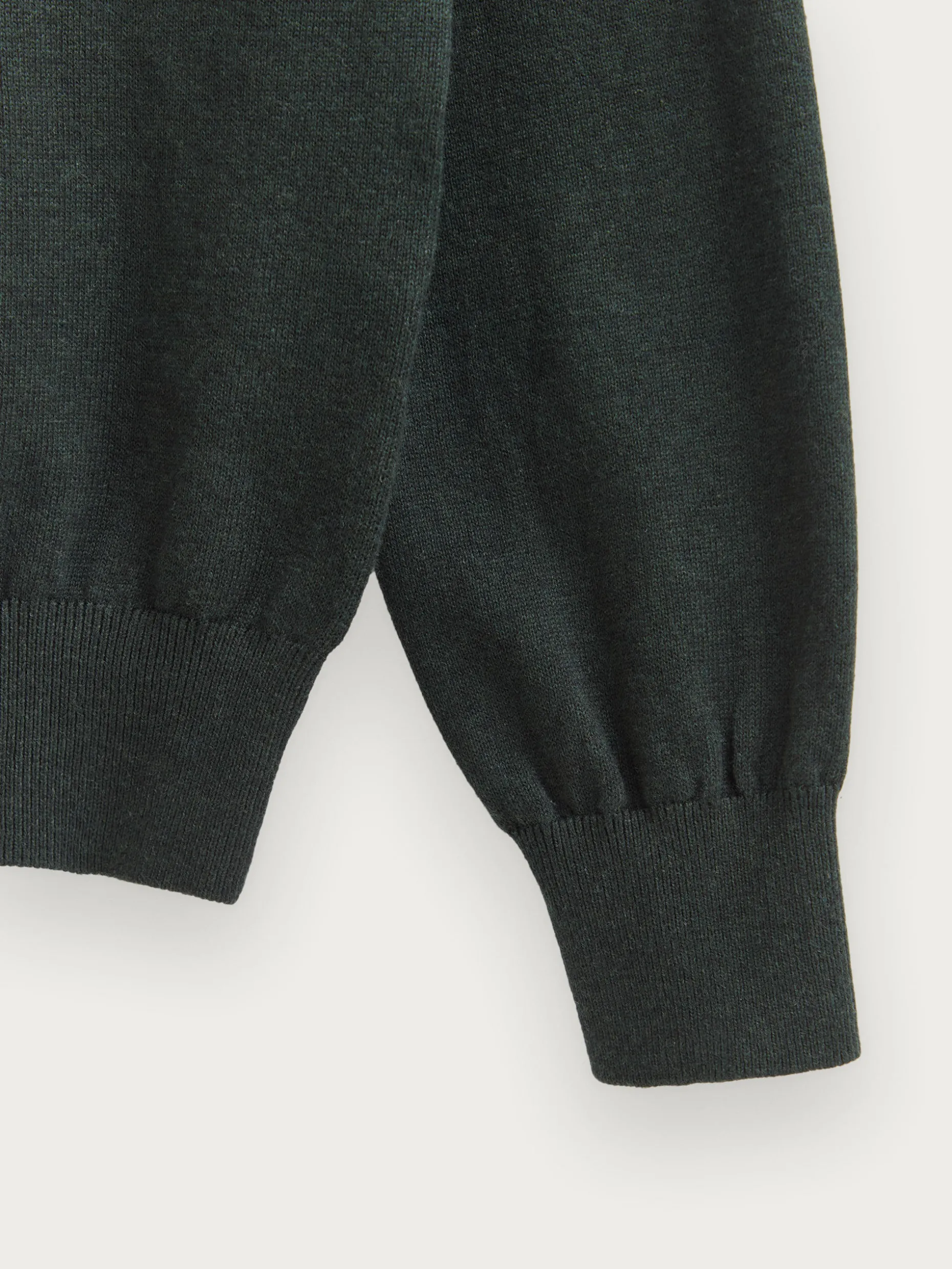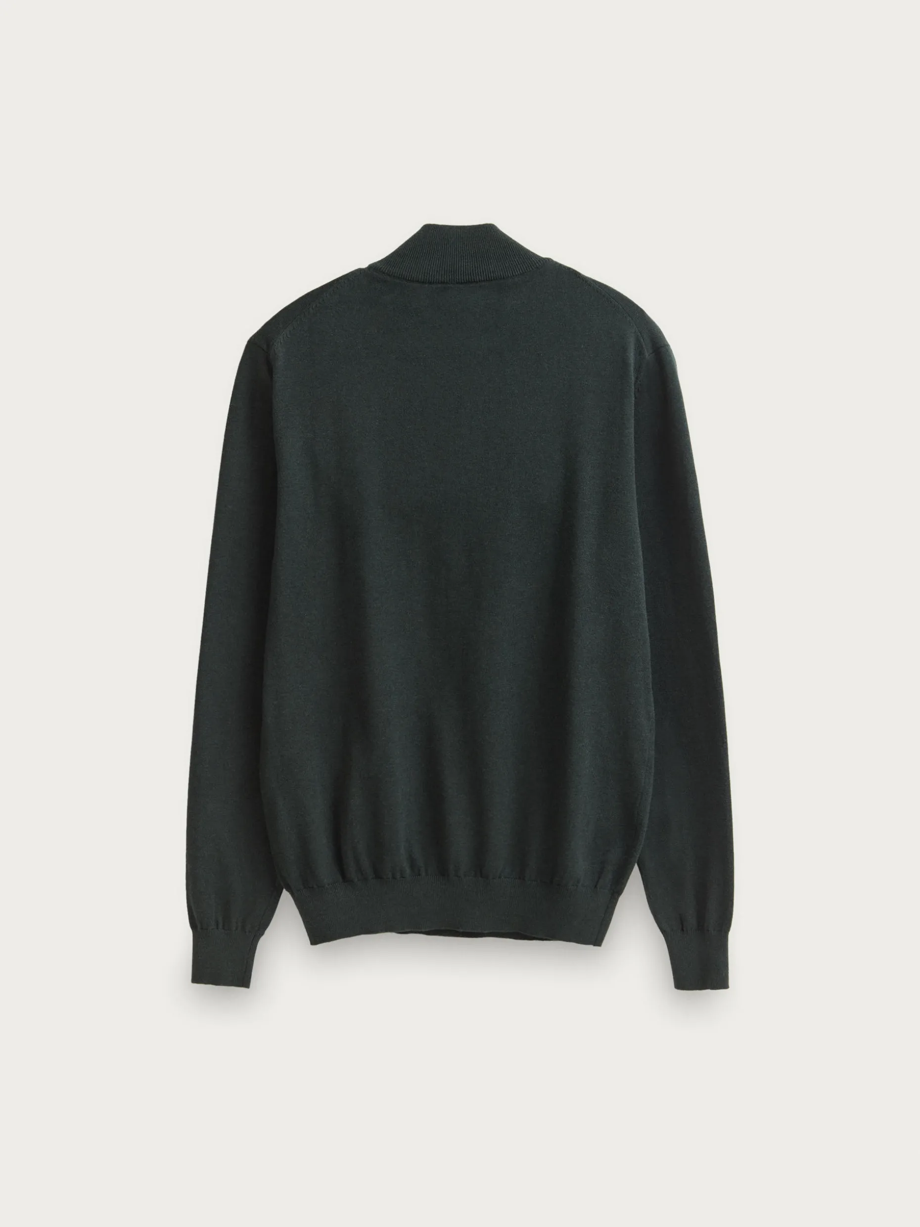 Jersey de corte regular confeccionado en algodón. Cuello alto con medio cierre de cremallera. Logo bordado en el frontal al tono. Cuello, puños y bajo en acabado elástico.