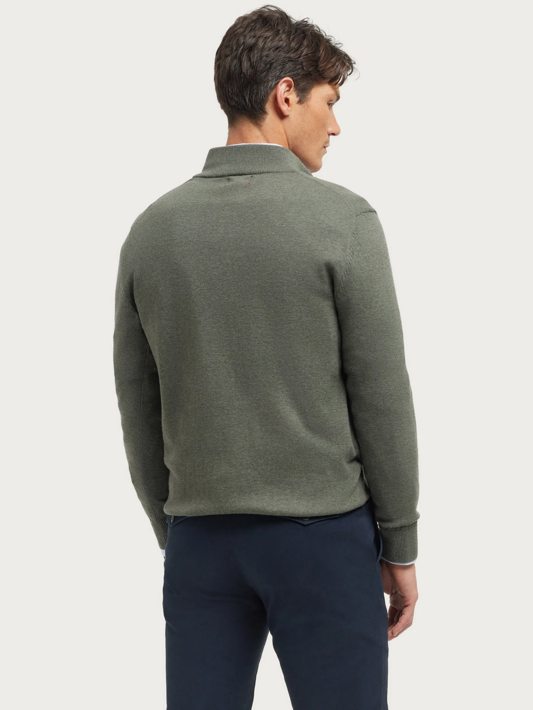 Jersey de corte regular confeccionado en algodón. Cuello alto con medio cierre de cremallera. Logo bordado en el frontal al tono. Cuello, puños y bajo en acabado elástico.