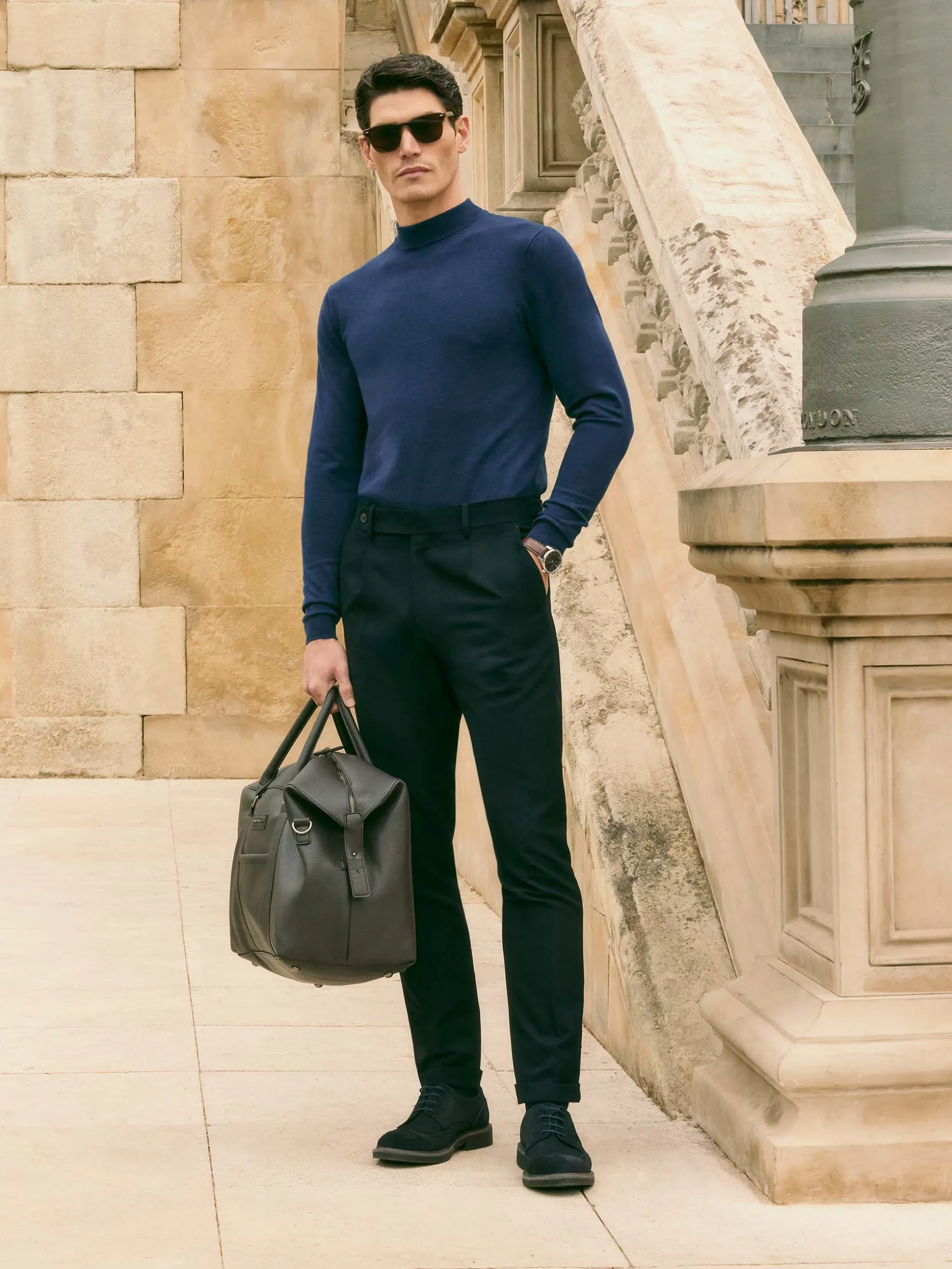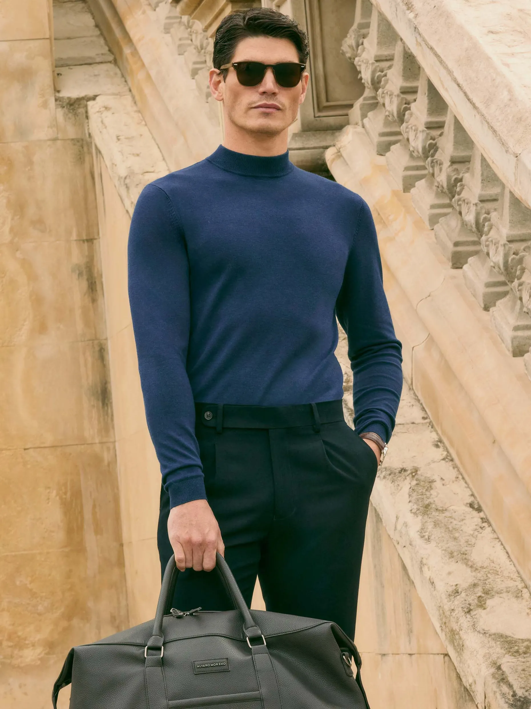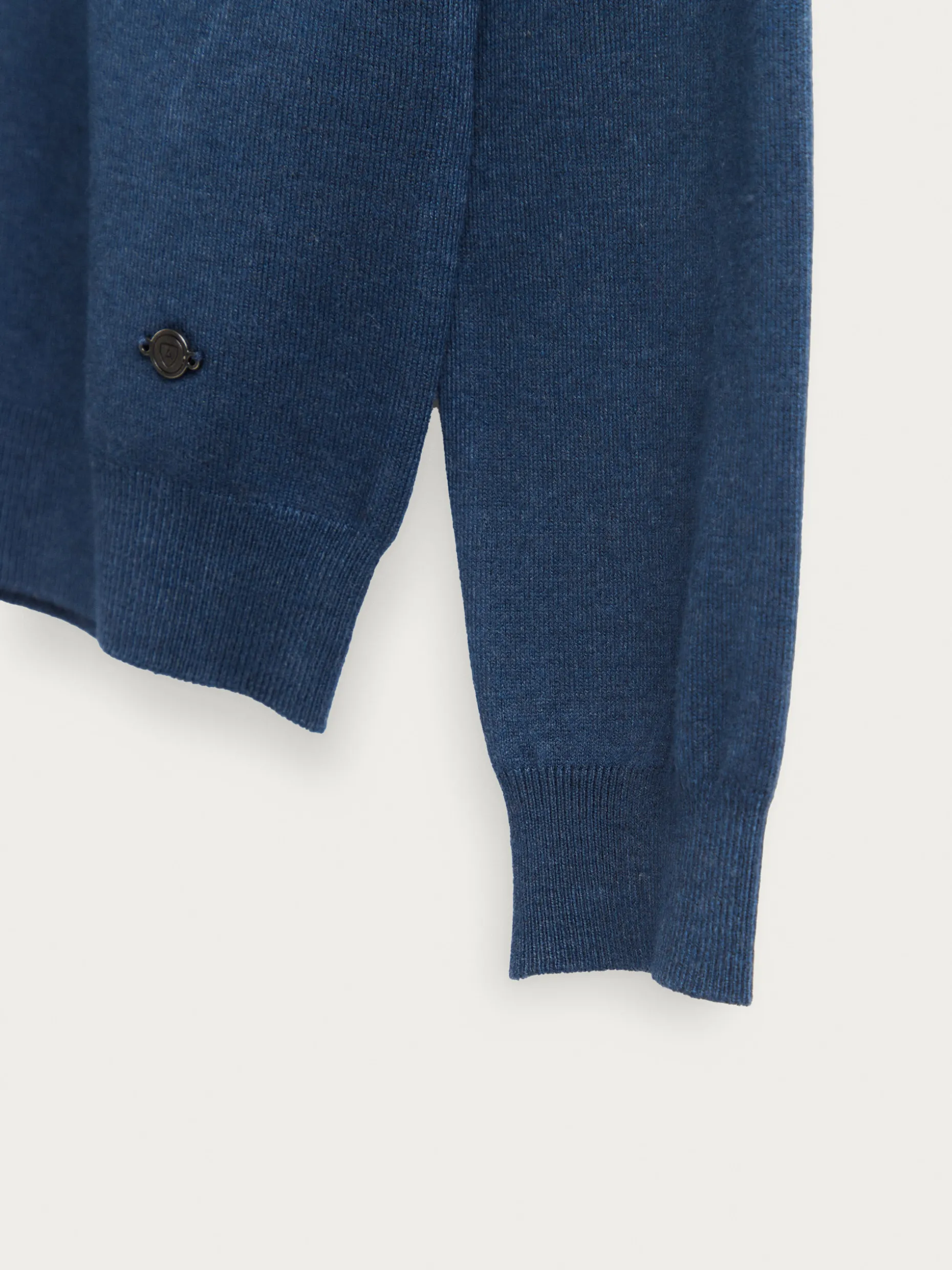 Jersey con cuello perkins y manga larga. Esta prenda de fina estructura, cuenta con detalle personalizado con el logo de la marca en el bajo y con sus puños, cintura y cuello ribeteados.