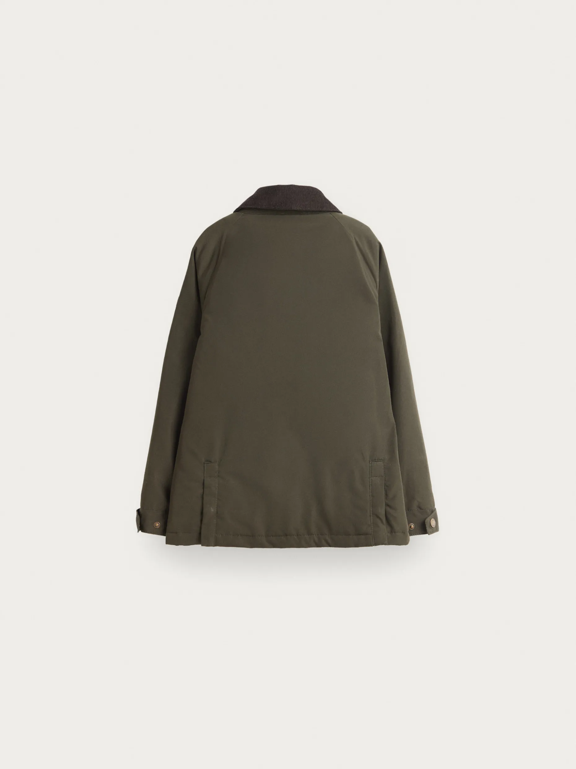 Parka con cuello a contraste y cortavientos interior desmontable. Cierre central mediante cremallera oculta por tapeta de botones a presión, cuatro bolsillos en el frontal y detalle personalizado en una de las mangas. Manga larga con puños ajustables. Forrada y con bolsillos en el interior.